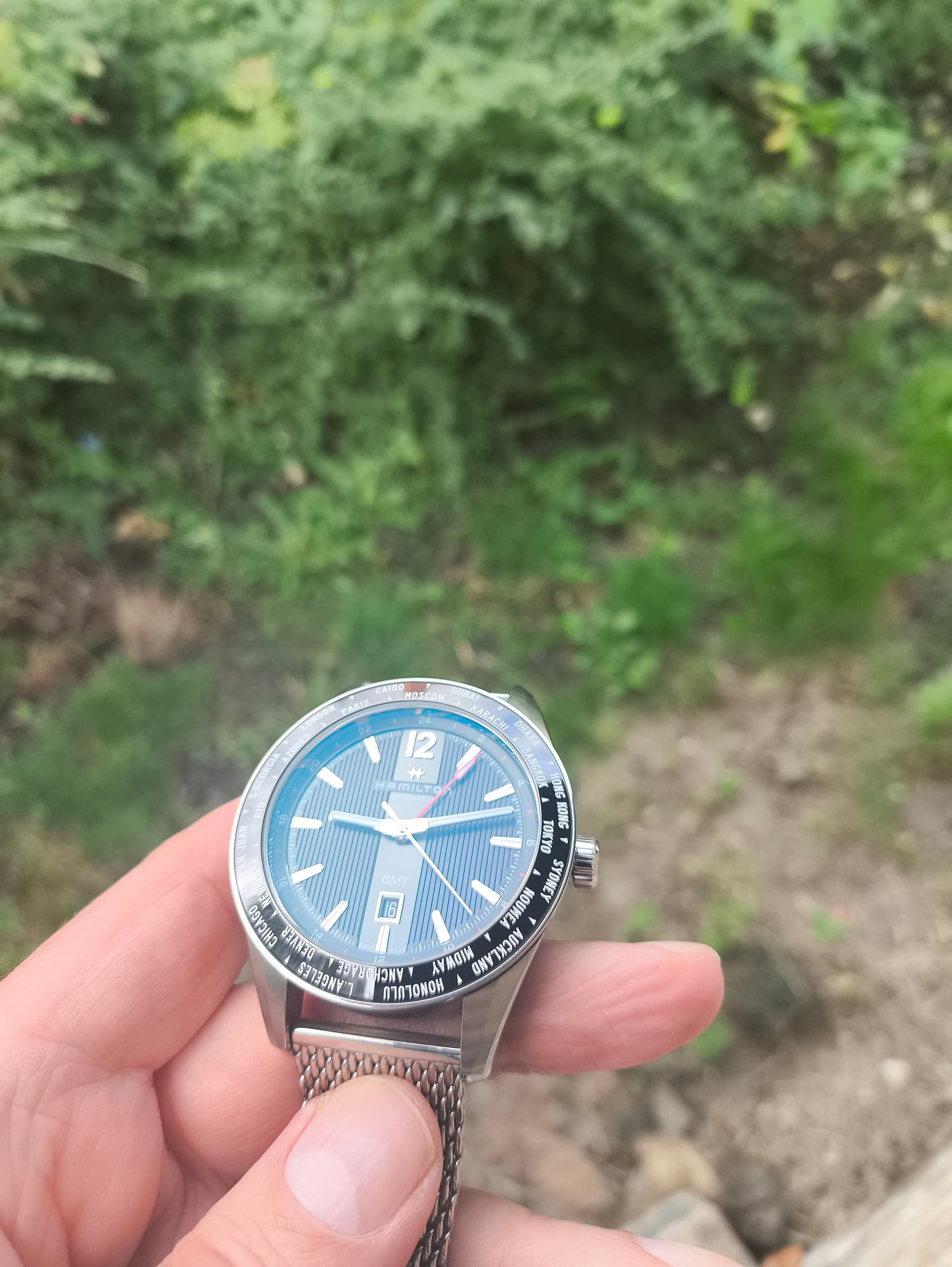 Zeldzame Hamilton worldtimer. 2018 stuks. Eerste eigenaar. Amper gedragen. Milanese band krijg je cadeau. Originele band is nooit gebruikt. Grote presentatie doos. Compleet. Geschikt voor cadeau. Geen enkele krasje te bespeuren.