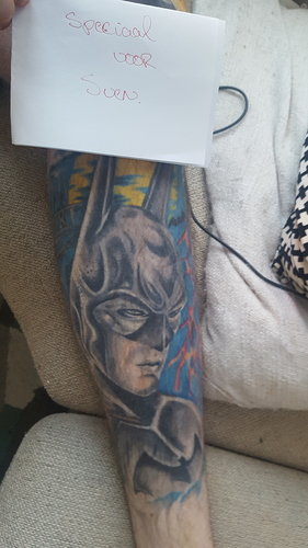 Aangezien de orginele chapter ring niet meer bestond stuurde hij een stalen chapter ring mee en die leek wel beadblasted. Toen heb ik aangeboden om 'm iets op te schuren, bleek hij van messing (geelachtig) te zijn onder de coating :laughing. Pff nou, gelukkig had ik nog iets tegoed van Jake (Dagaz) en deze had mij een zwarte stalen chapter ring opgestuurd.