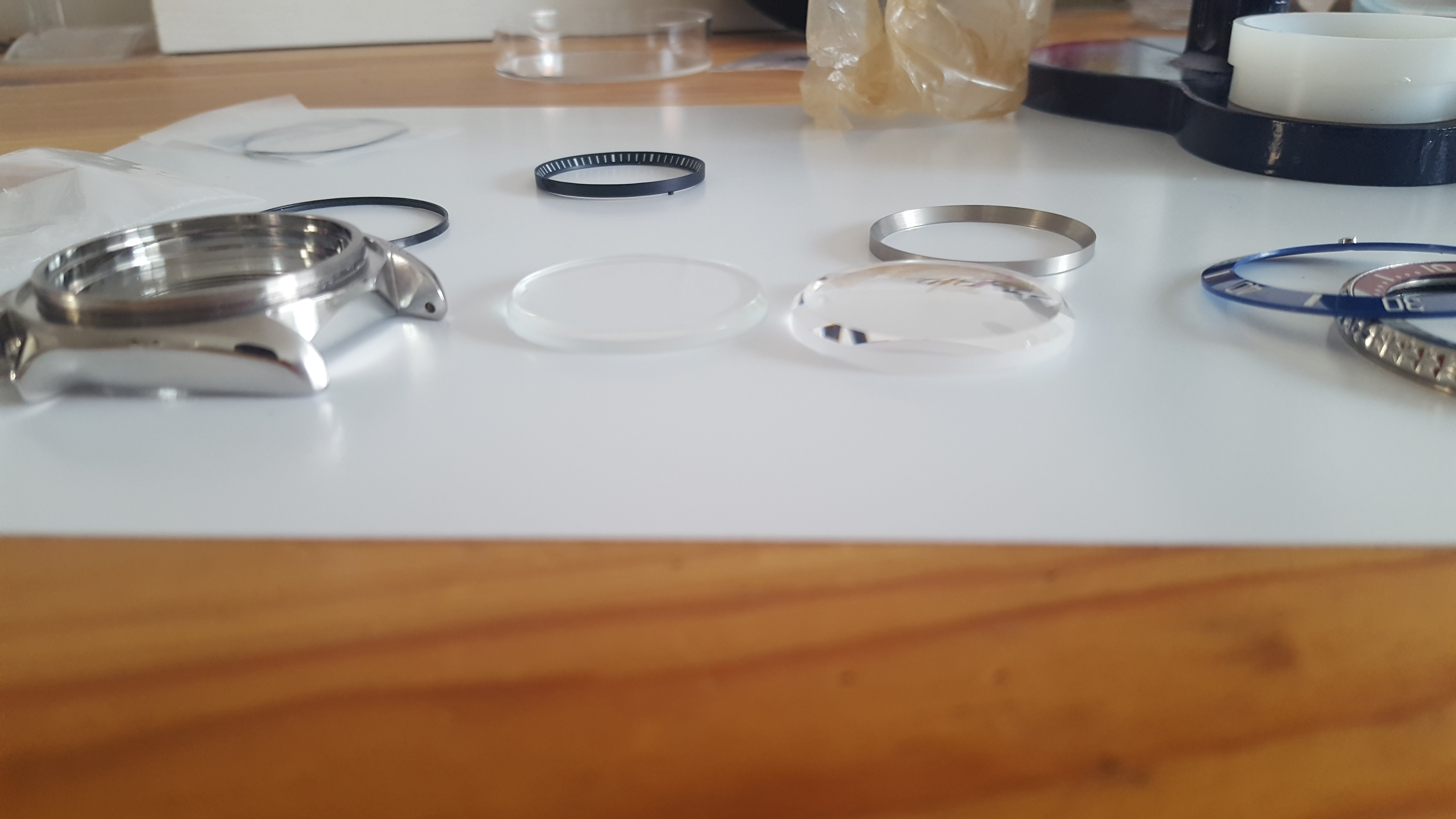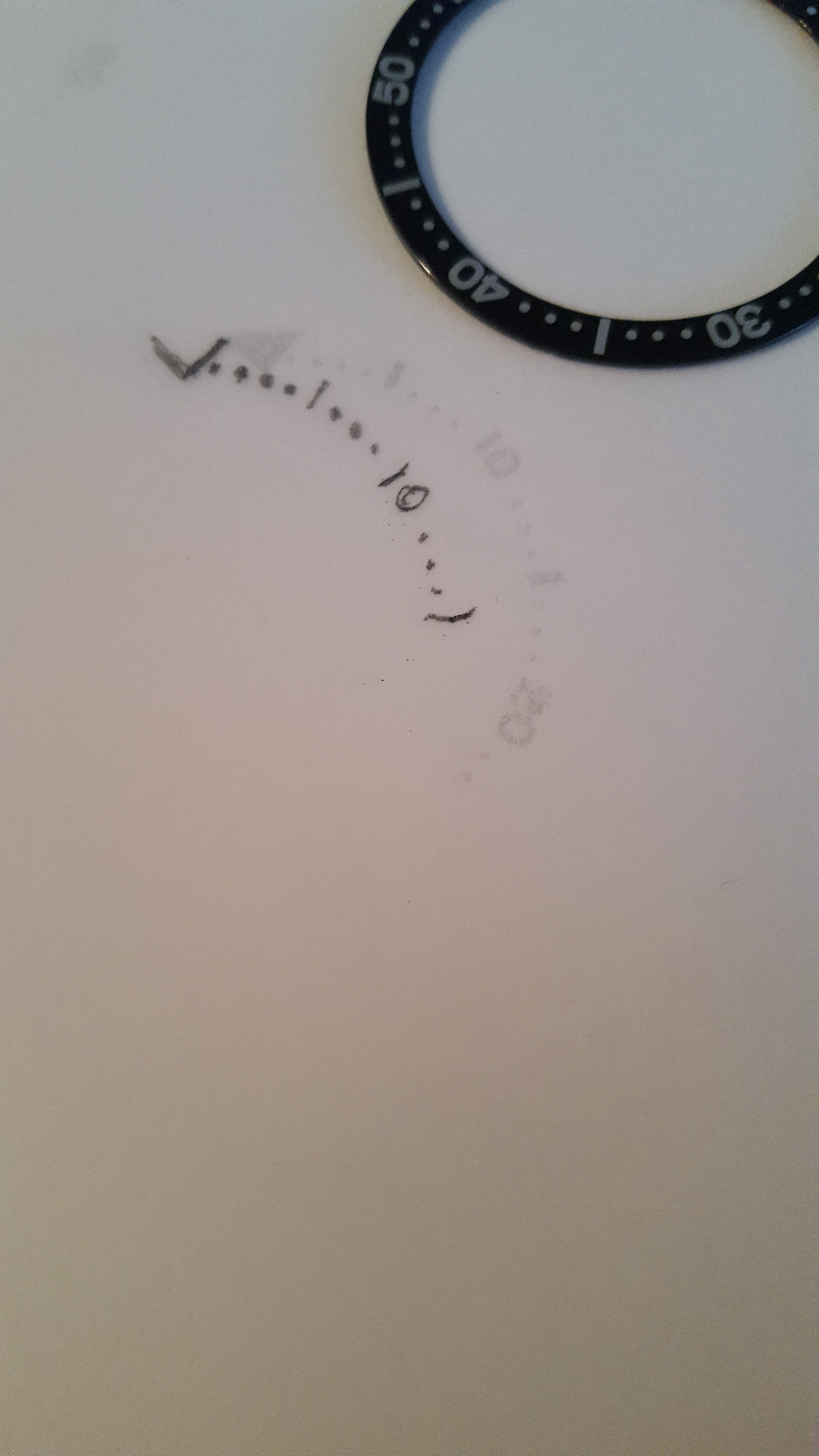 Oke, no worries. Chapter ring on hold en naar de bezel insert. Ik heb gevraagd aan Damien Lau van DLW of ik 2 ongespoten bezel inserts kon krijgen van keramiek waarvan de cijfering er al in gegraveerd is. Dit bleek lastiger te zijn dan ik dacht, want de cijfering wordt pas gegraveerd nadat de bezel insert gespoten is. Daarna pas gebakken.