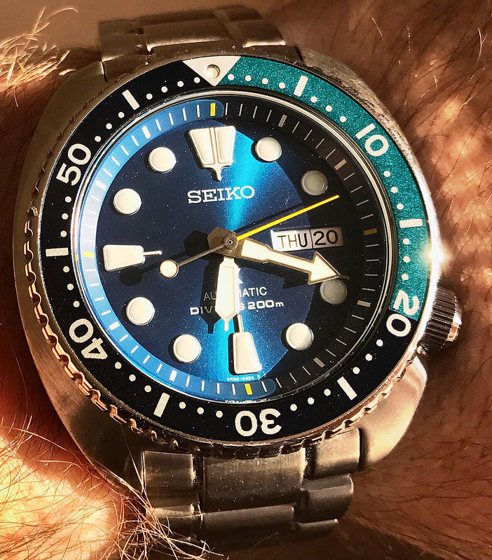 In een paar andere topics heb ik meerdere keren het begin van de SKX Blue Lagoon laten zien. Ik vind de nieuwe LE Samurai en Turtle super, alleen vind ik ze beiden net te groot voor mijn pols met 44mm.