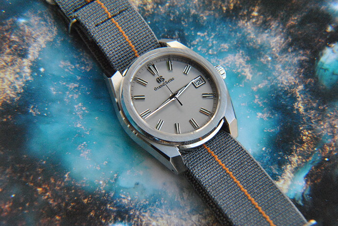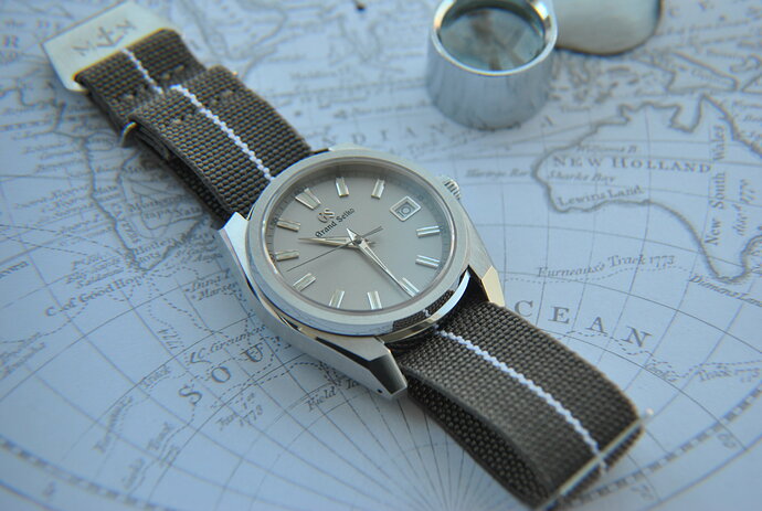 Deze is afkomstig uit de Sports Collection, en daarbij ook de eerste collectie waarbij GS ooit gebruik heeft gemaakt van stoffen straps. De vrij agressieve kastvorm, het karakteristieke gebruik van Zaratsu en vrij veel brushing en gebruik, lume en bijbehorende specs maken deze GS overduidelijk een sportief horloge, maar wel een vleugje dressed up.