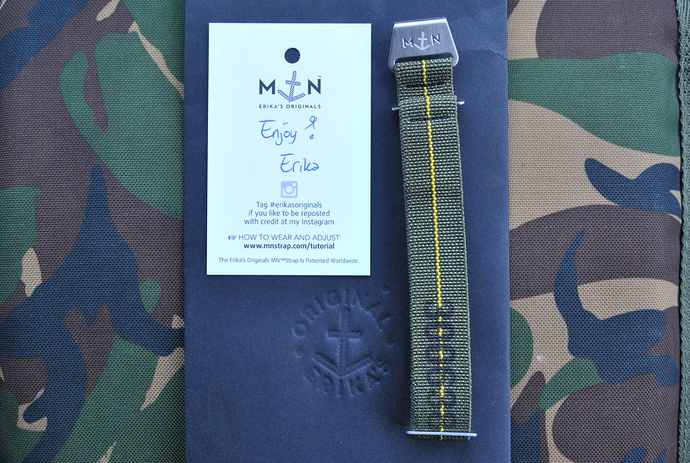 Erika heeft zowat zelfstandig, met de nodige exposure van horlogeblogs de MN strap commercieel gemaakt, met de Erika’s Originals naam onlosmakelijk verbonden aan deze straps. De marketing doet ze erg goed. Zo goed, dat ze qua prijspunt op hetzelfde niveau zat als NDCstraps. Haar gebruik van social media, opties tot customizing en unieke kleurencombinaties maakten haar een favoriet bij velen. Ook het feit dat ze elk bandje met de hand op maat maakte en stikte is op zich een ook leuk detail.