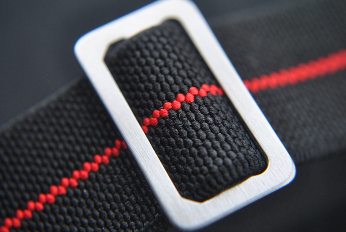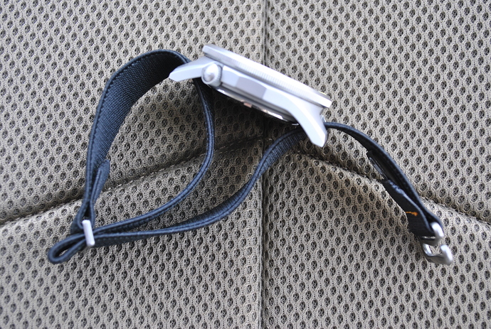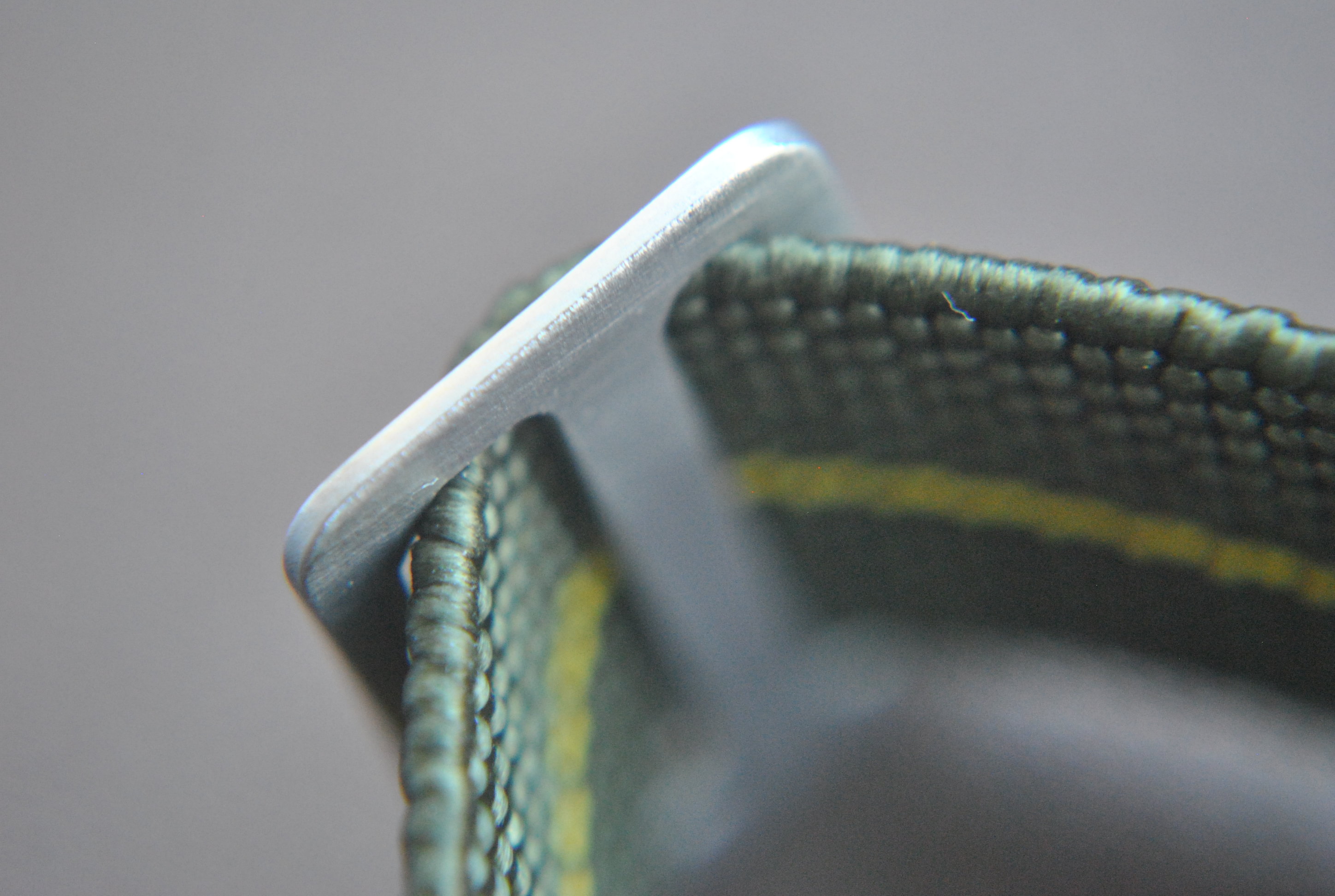 Echter, het design van deze strap vraagt om deze soort webbing, want dikker of steviger spul pas gewoon niet door de keeper. Na het bekijken van de gebruiksaanwijzing is het bandje zo om je horloge gefrot.