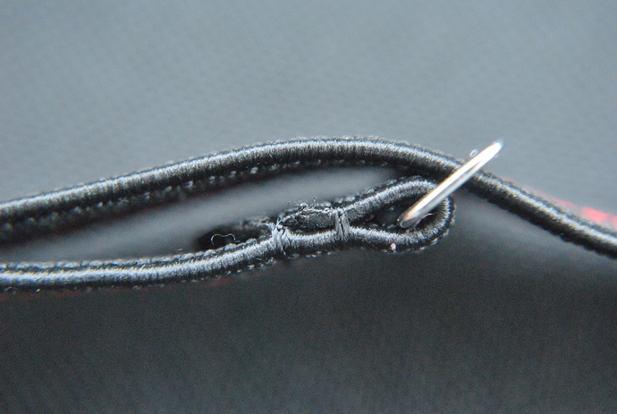 Ik heb deze met oranje stiksel besteld. Vond ik mooi. Het is gewoon gestikt. Niet mooi, gewoon gestikt. Heel beperkt gestikt ook, in vergelijking met de concurrenten. Als het maar vast zit, stel je niet aan. Zo gestikt. De webbing voelt aan als…weer die Chinese rommel. Verdomme. Het leek zo goed te gaan. Dit is gewoon zeer rekbare, dunne meuk en absoluut geen parachute webbing. Beetje zoals van dat Luff spul hierboven, maar synthetisch spul.