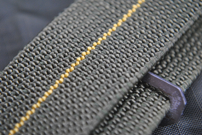In detail blijft het dezelfde webbing als voorheen. Het verbeterpunt met betrekking tot de slijtage zie je aan de afwerking van de zijkanten. Deze zijn nu volledig met fijn nylon gestikt. Bij de oudere versie was dit een stuk spaarzamer gedaan, wat de slijtage van de randen verklaart. Maar ik vreet mijn sok op als dit niet zou slijten. Hooguit minder snel.