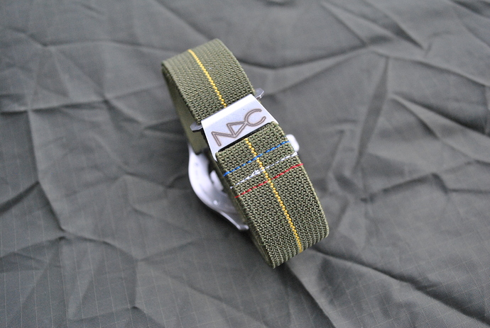 Voorheen bekend als Jackostraps. NDC staat voor Nageur De Combat, wat zijn merknaam is geworden. Hij gaat al een tijdje mee en was voornamelijk bekend onder verzamelaars van vintage militaire horloges. Hij claimt de enige te zijn die MN straps maakt van 100% originele Marine Nationale paragear. Zijn voorraad van het militaire webbing is beperkt, wat de prijs al snel opdrijft. Wat hij doet, is het originele design van vroeger aanhouden, zonder poespas. Gewoon functioneel en betrouwbaar genoeg om een horloge aan de pols te houden, zoals de militairen van toen het voor ogen hadden. Geen kleurtjes, geen andere opties uitgezonderd van het stiksel. Omdat ik een hekel aan Frankrijk heb, heb ik het “Vive la France” pakket besteld.