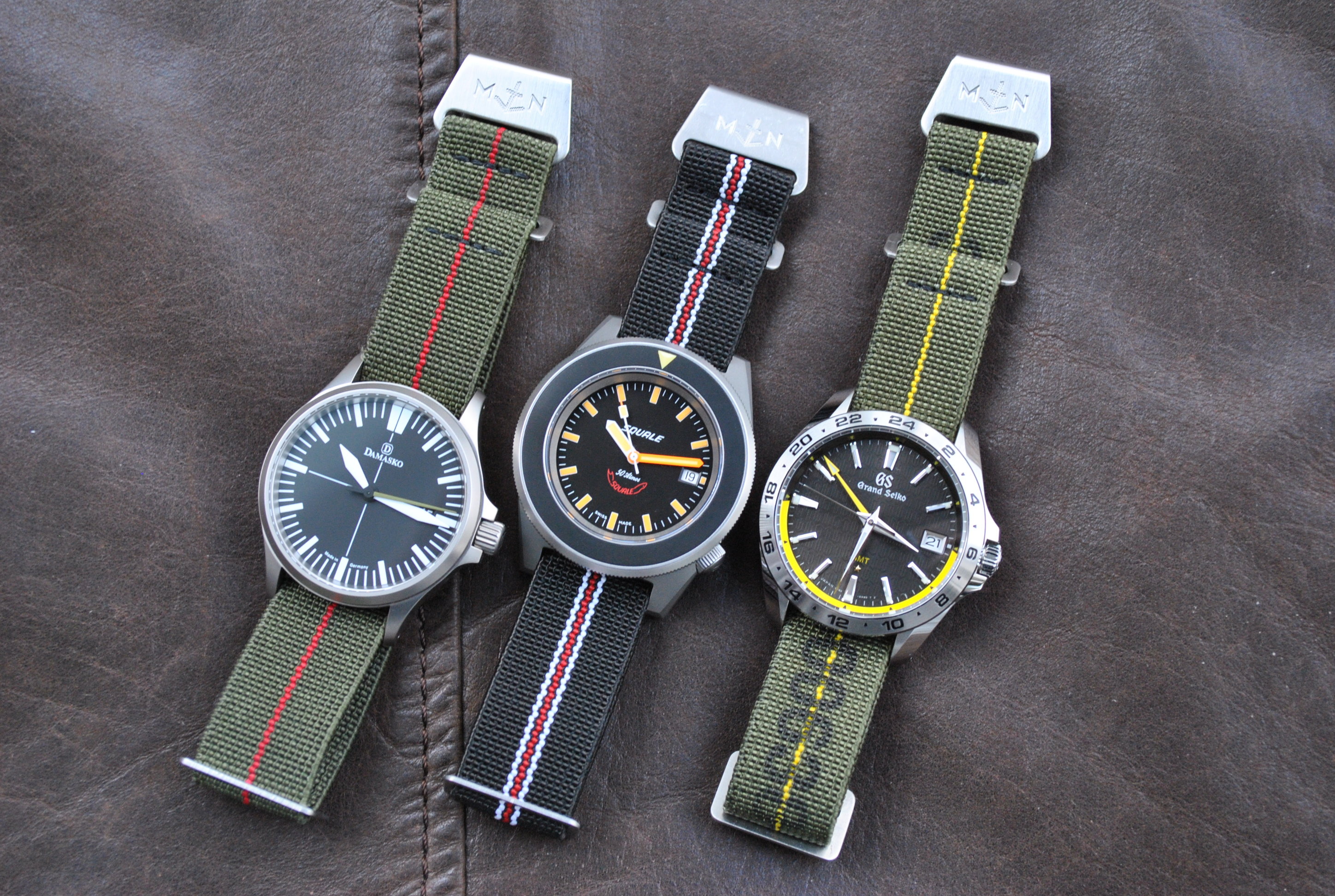 Goed, nu weten we hoe deze bandjes ontstaan zijn, en dat ze onlosmakelijk verbonden zijn met een stukje recente ( militaire ) horlogegeschiedenis. Uiteraard bestaan ze allang, echter waren ze niet bekend onder het grote publiek. NDC straps ( voormalig Jackostraps ) was de eerste die deze bandjes kleinschalig verkocht, en deze worden gemaakt van authentiek parachute webbing. Erika’s Originals heeft hetzelfde bandje commercieel gemaakt door het ontwerp te verbeteren, te laten patenteren en haar naam een merk an sich te laten worden.