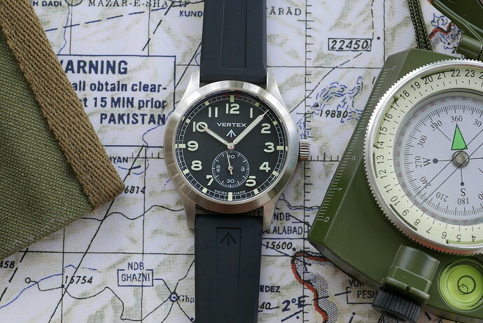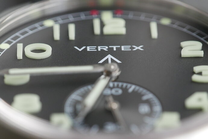 Ik heb wat verteld over de heritage. Ik heb wat verteld over deze hommage. Ik heb wat verteld over de ekkies x value for money. Is dat het waard? Simpel gezegd: nee. Koop voor 1k een Stowa Flieger en je hebt wat mijn betreft hetzelfde in je handen qua heritage en afwerking. Oke, hun kasten komen uit China, en Vertex is wel degelijk 100% Swiss made. Maar dan nog. Eerst nog wat plaatjes, alvorens ik mijn strenge, doch rechtvaardige oordeel vel.