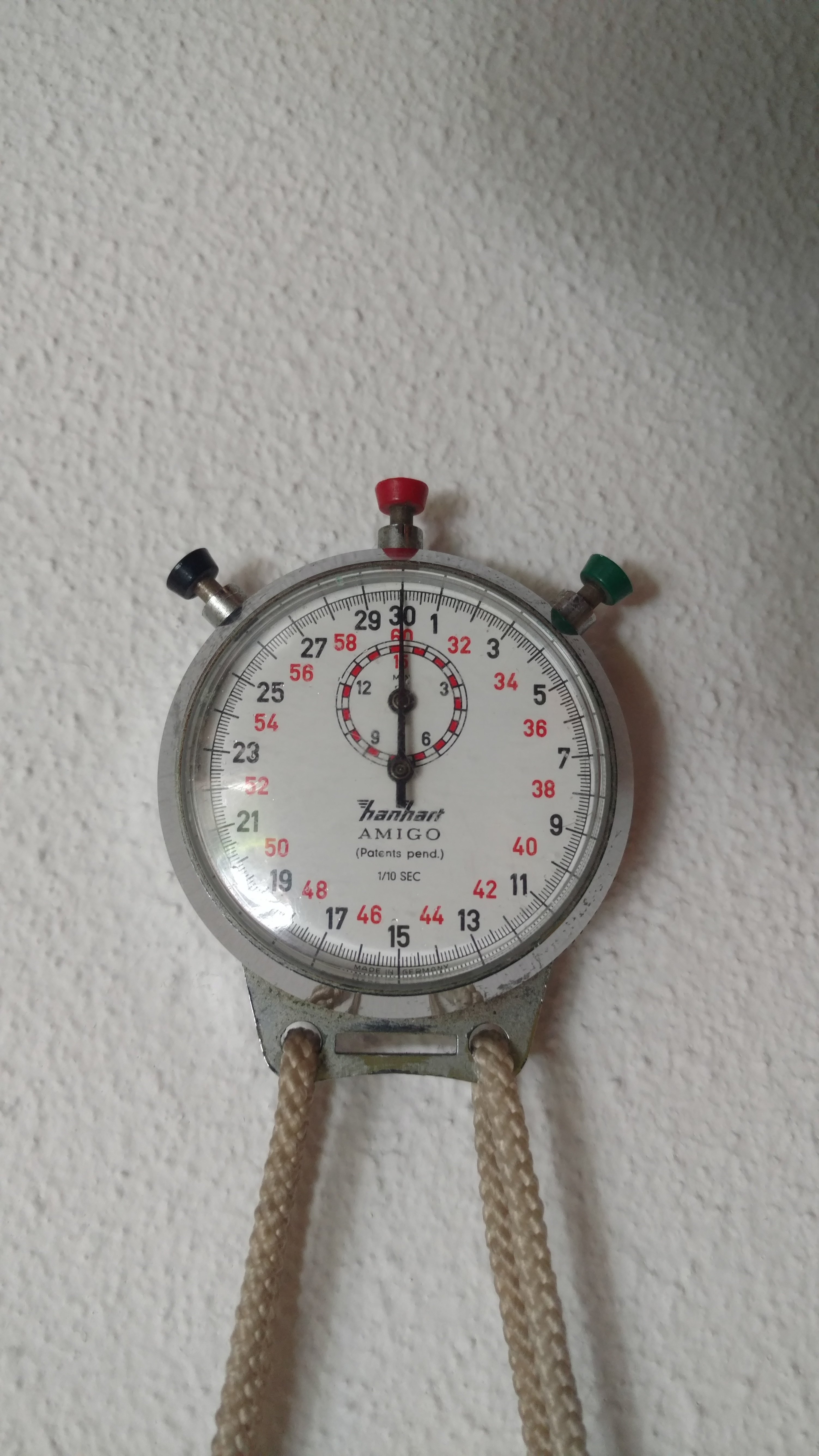 Zie hier. Mijn dierbare hanhart. Deze is van mijn in 1989 overleden opa geweest. Kan me niet anders herinneren dat hij deze bij elke voetbal wedstrijd in de handen had om mee te timen!. zoiets vergeet je nooit! Hij is in werkende en in best heel mooie staat en ik heb hem aan de thermostaat hangen in de huiskamer. Hij is mij dierbaar.