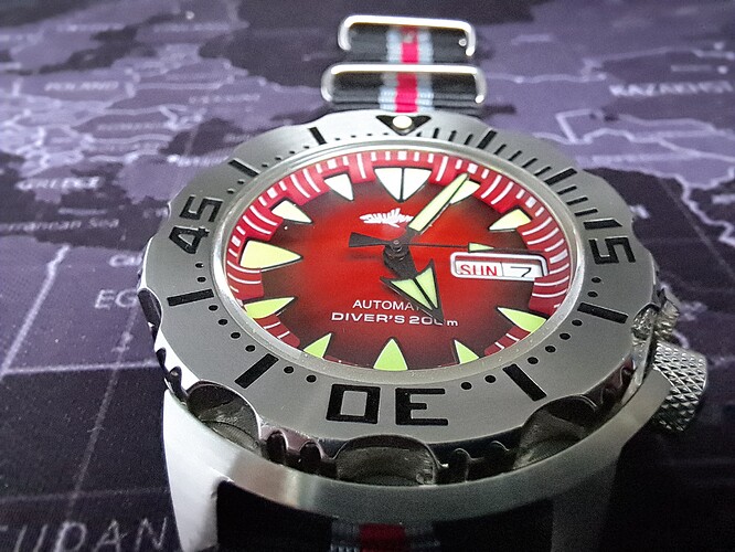 Ik ben zelf gek op Seiko Monsters. Dus toen deze Heimdallr Ocean Monster in rood werd aangeboden, kon ik 'm eigenlijk niet weerstaan.