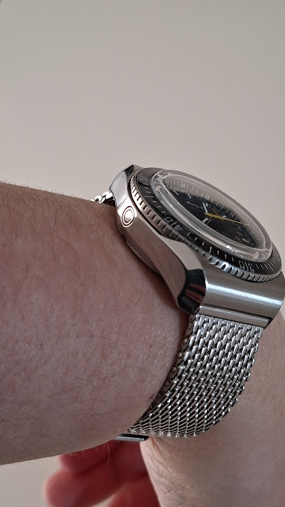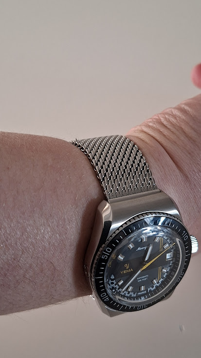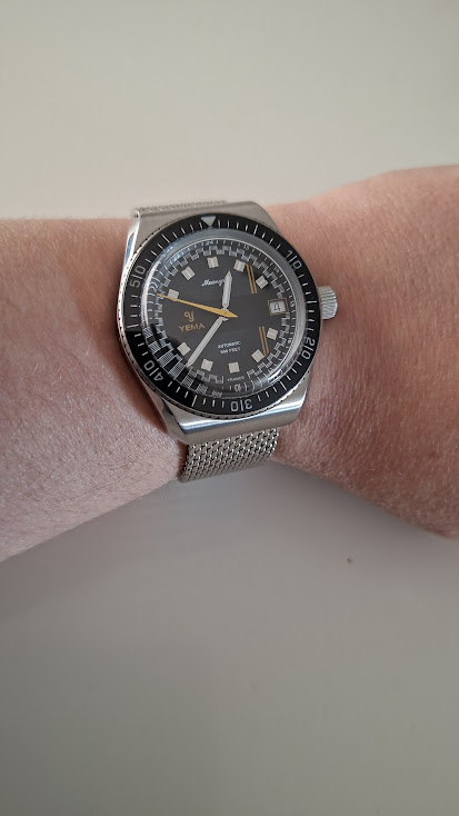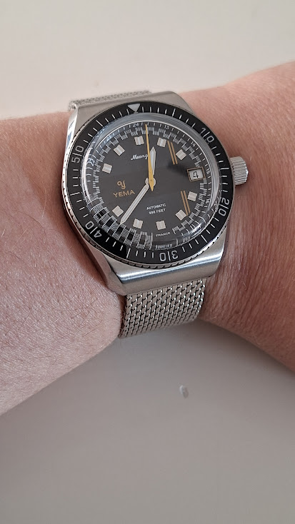 de band is, zoals ik al verwachtte, met iets te veel nikkel in, dus die is vervangen. Er zijn nog bandjes onderweg voor deze, maar die zijn nog niet gearriveerd, dus voorlopig zette ik er dit op - en ik denk dat dat ook zo gaat blijven want tegen alle verwachtingen in is deze band er vet mooi op. alleen hoop ik nog een authentieke yema buckle te vinden. Niet apart te krijgen bij yema zelf, heb al gekeken ![]()