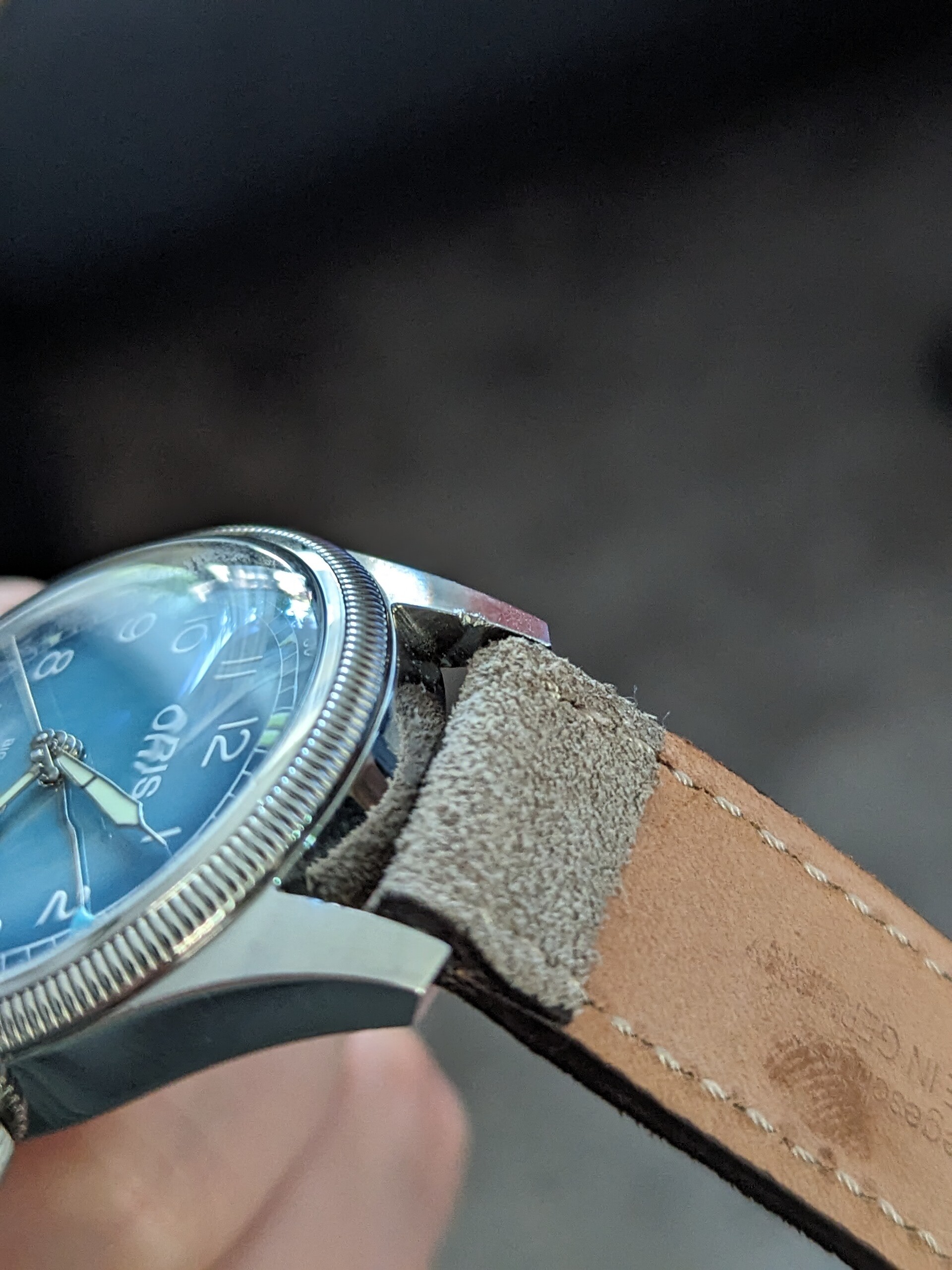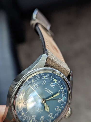 Mijn hemel ik kan wel janken! Ik heb vandaag eindelijk mijn Nomos bandje binnen gekregen door mijn Oris Big Crown x Cervo Volante met Nomos shoulder push pins.