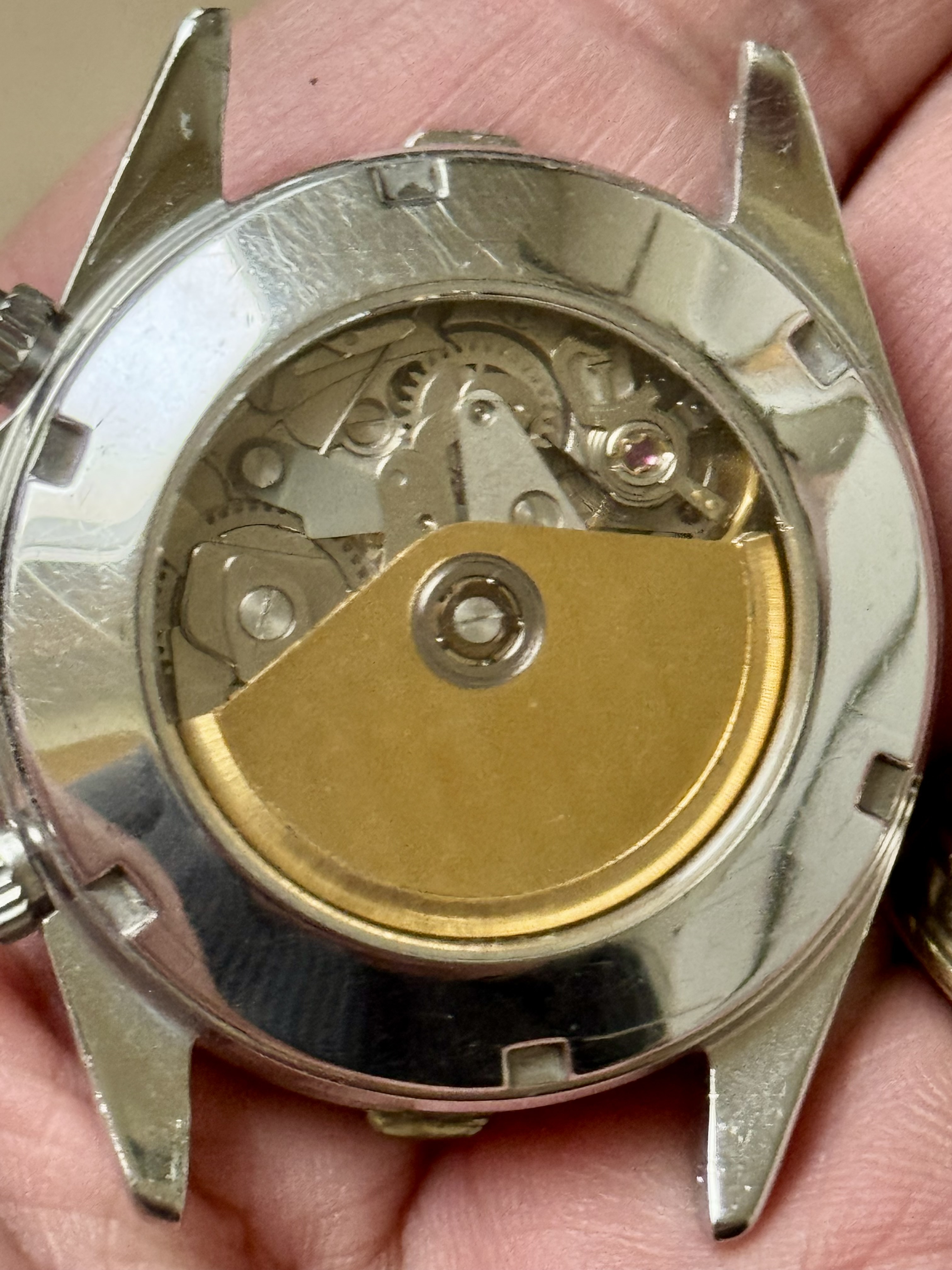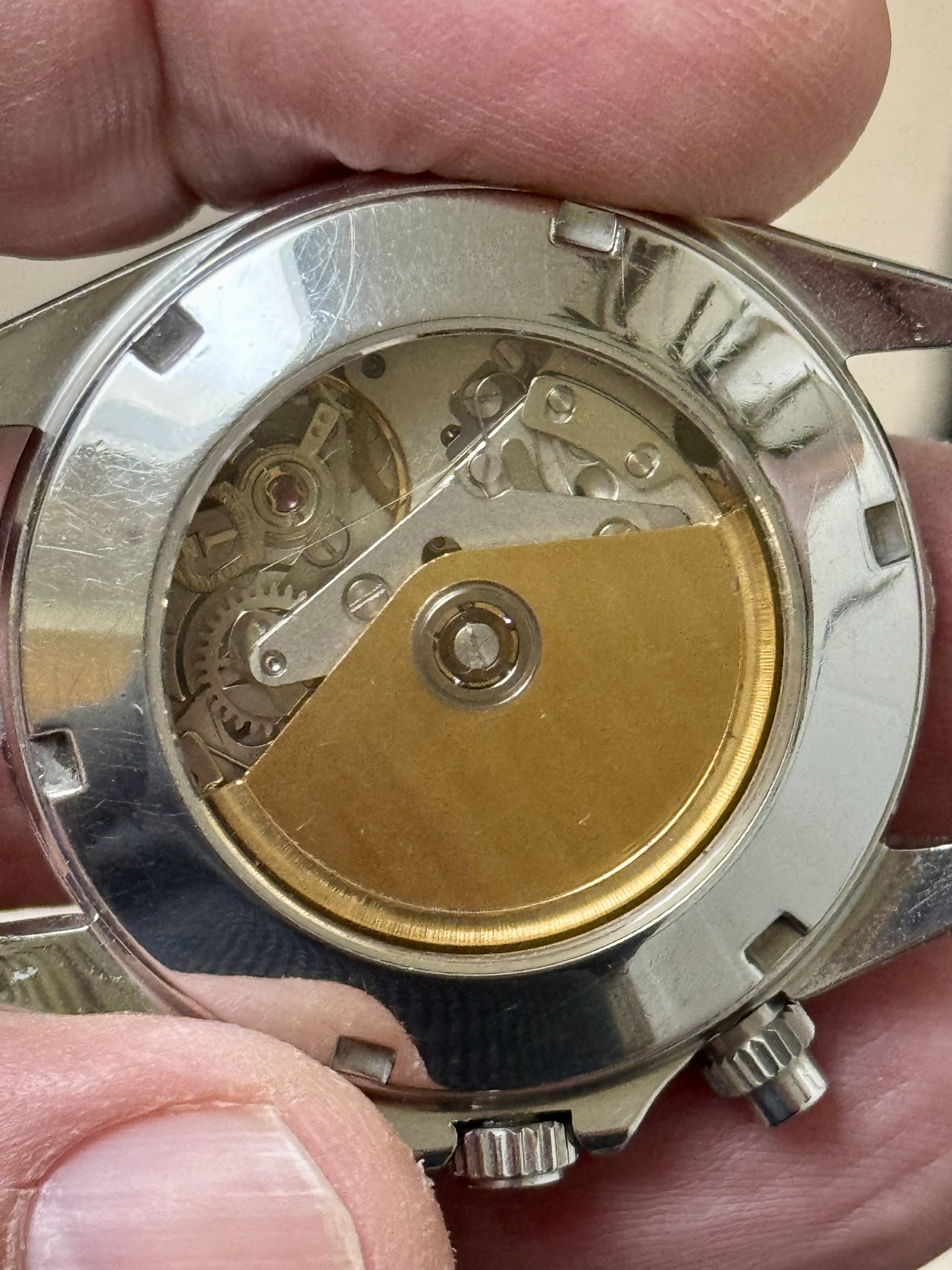 Hij is geserviced, loopt perfect op tijd, kleine krasjes op het glas maar verder in uitstekende staat.