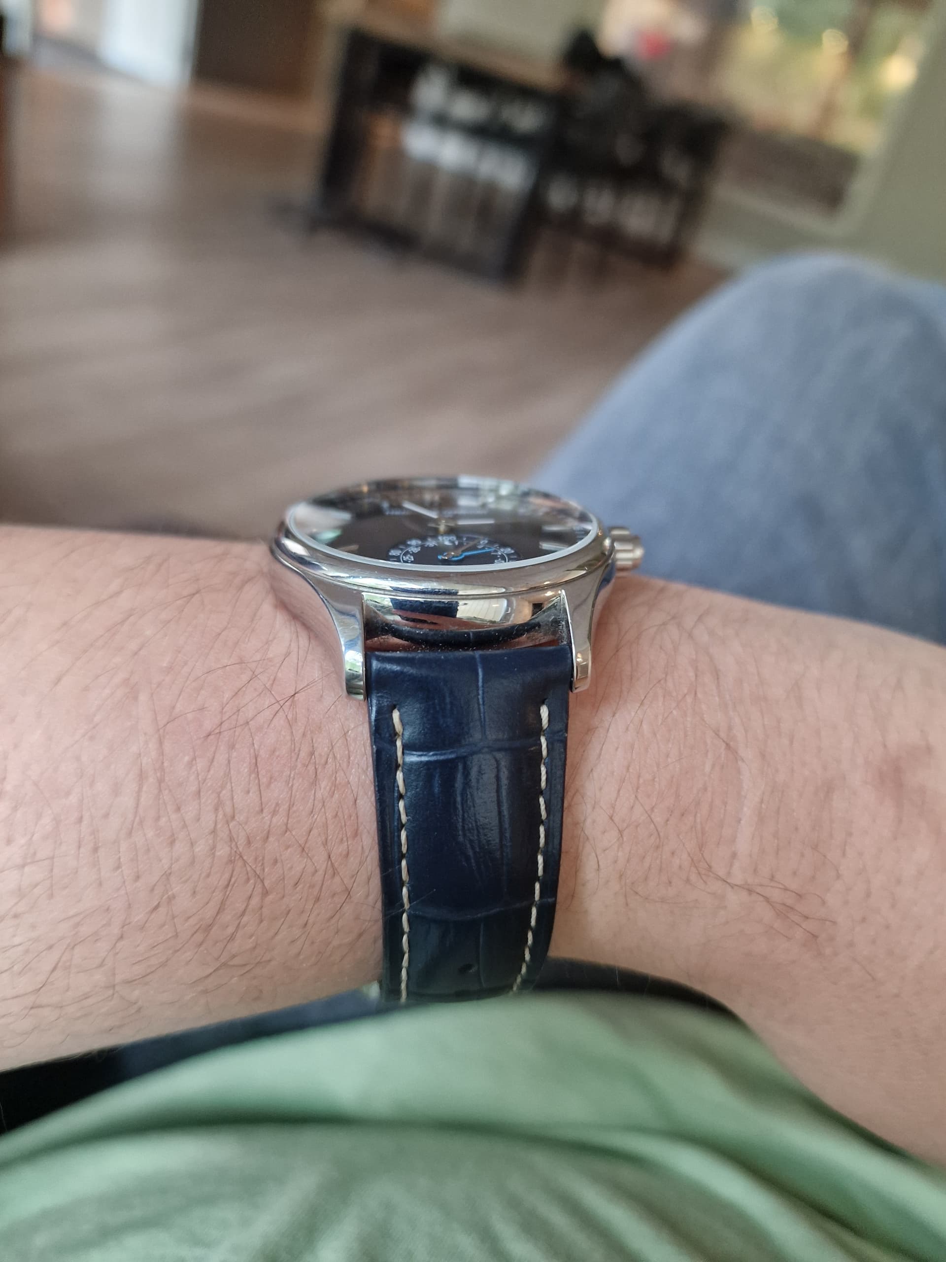 Ik heb hem nu weer op het originele bandje zitten die ik er bij ontvangen heb. Maar heb hem ook al op een zwart lederen band gedragen. En een bruin bandje.