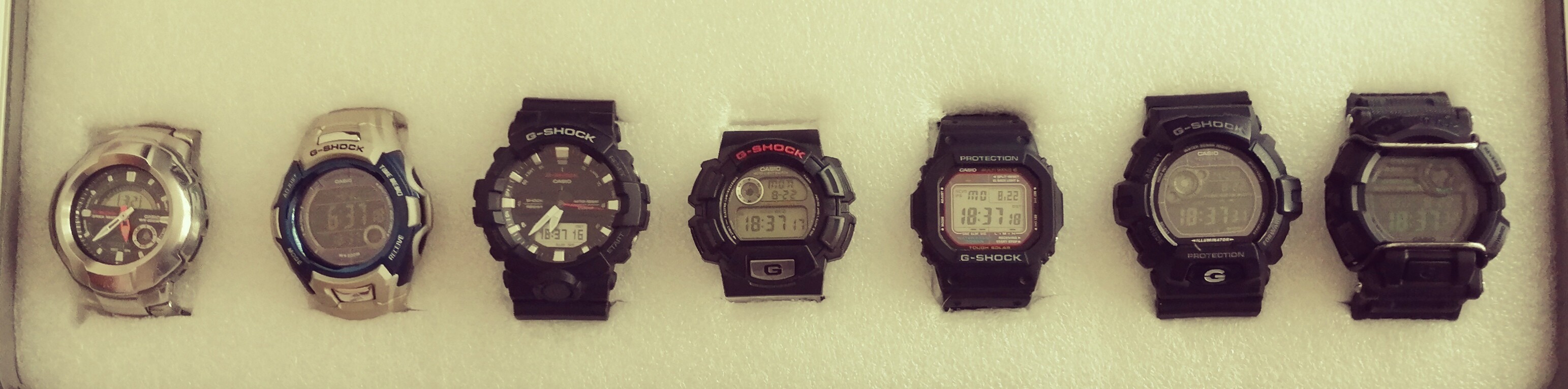 Ik zag onlangs een foto van een oude G-shock passeren, uit ongeveer dezelfde periode al mijn G-shock (wel in een betere staat), wat mij op een idee bracht.