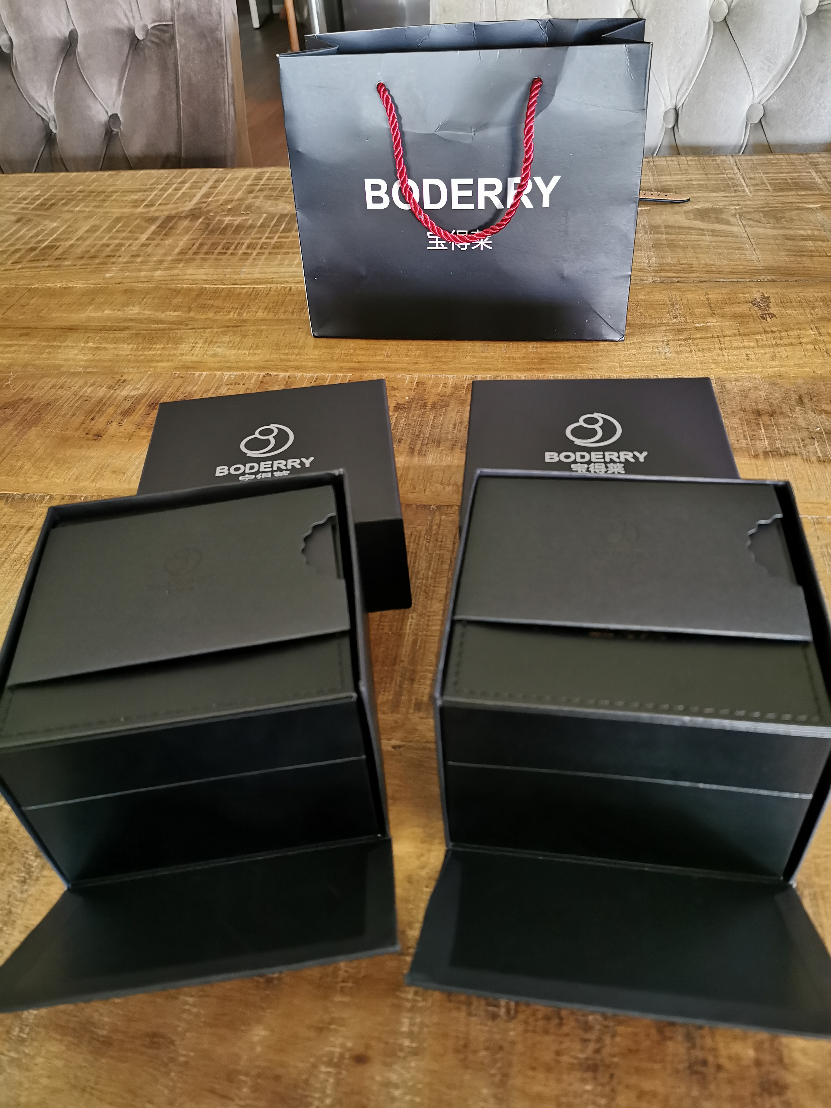Via AliExpress de fabriek van Boderry weten te bereiken en contact gezocht. Ik had al een review gezien van de Titanium BDA002T voor de prijs van 148 US incl. verzenden en die was niet verkeerd. Ik bedoel, waar vind je nog een massief titanium klok voor dat geld. Titanium band hadden ze (nog) niet maar er was wel een stalen versie van het horloge met een stalen band. Ook 148 US.