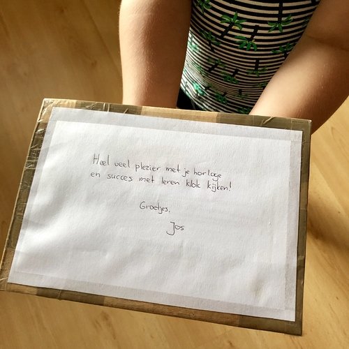 Gefeliciteerd, leuk dat je dochter hiermee de tijd kan gaan leren lezen. Jong geleerd…
