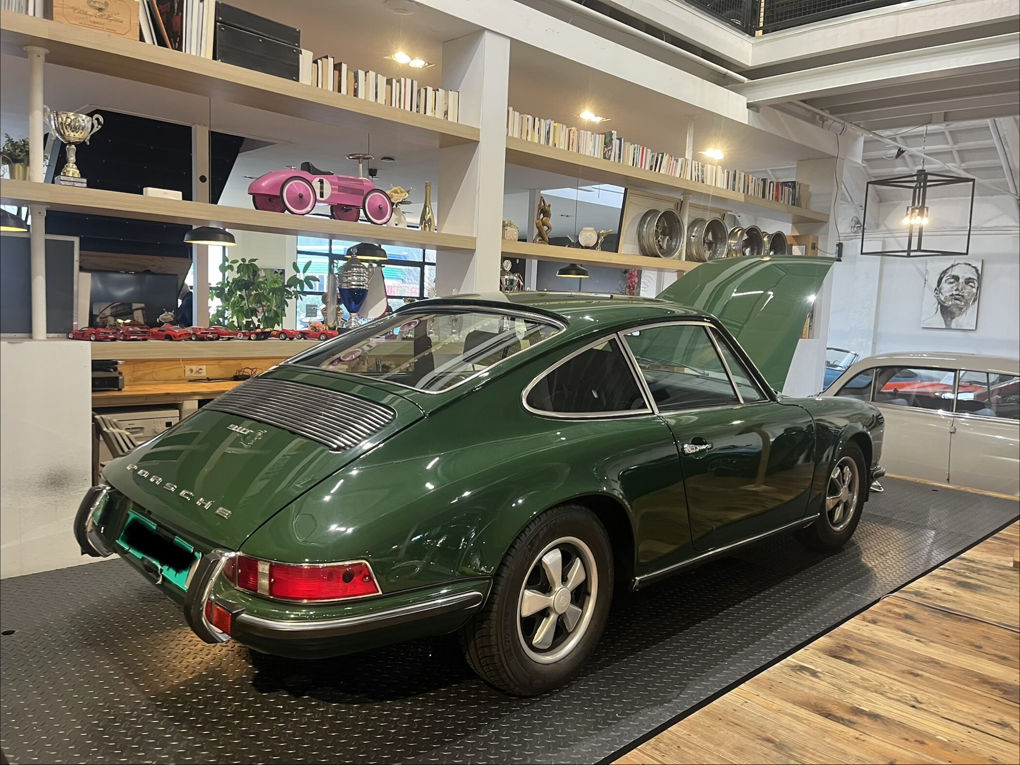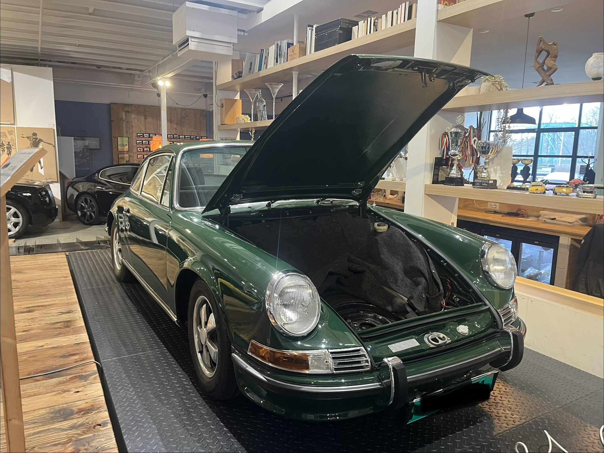 Uiteindelijk aangekomen bij coolclassiclub even een uitgebreid rondje gelopen door het pand. Onvoorstelbaar wat daar staat. Het aanbod doet de naam wel eer aan. Veel Porsche, oude 911’s, 930 turbo, 356. Maar ook een Mercedes sls en jaguar e-type om wat andere dingen te noemen.