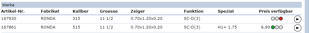 Een Ronda 515 heeft dezelfde externe afmetingen en dezelfde dimensies qua diameter van de wijzers.