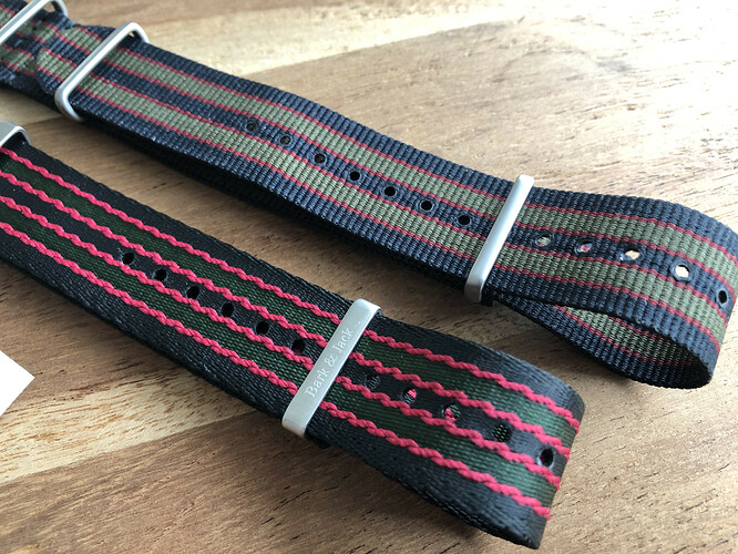 Net een bond-nato van Bark & Jack ontvangen. Ik sta echt verbaasd over de kwaliteit. Die van Geckota is ook niet verkeerd (en iets goedkoper) maar haalt het niet bij de zware hardware en levendige kleuren van het nylon van B&J.