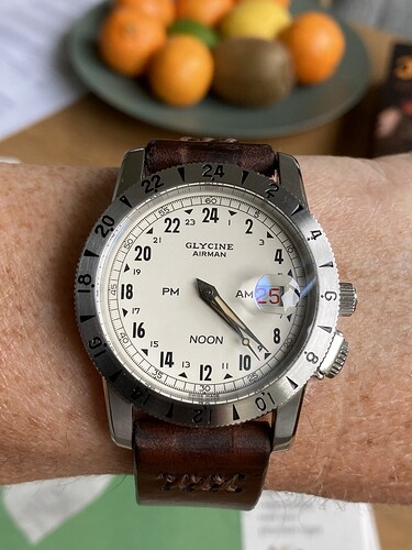 Deze Glycine Airman Vintage ‘53 met een oud Roemeens bandje van Zeppelin.