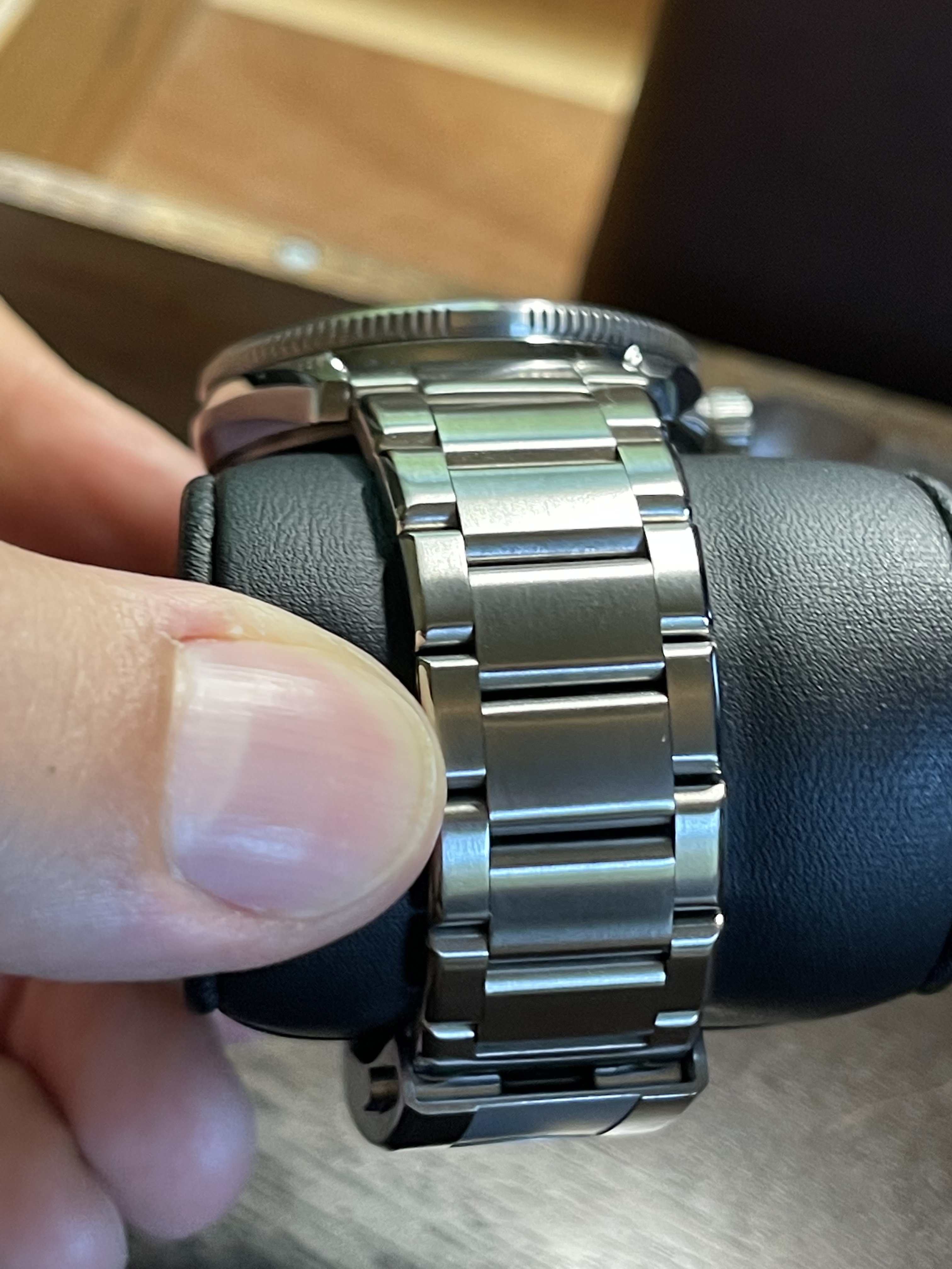 Op plaatjes nooit mooi gevonden, maar vanochtend bij de juwelier bekeken en nu ben ik om. Erg gaaf horloge in een mooie maat.