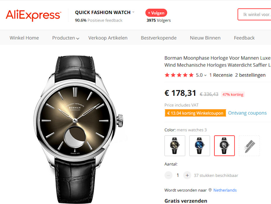 En ook apart: bij overzicht in Google is de zwarte € 10,77 en als je dan doorklikt € 178,31.