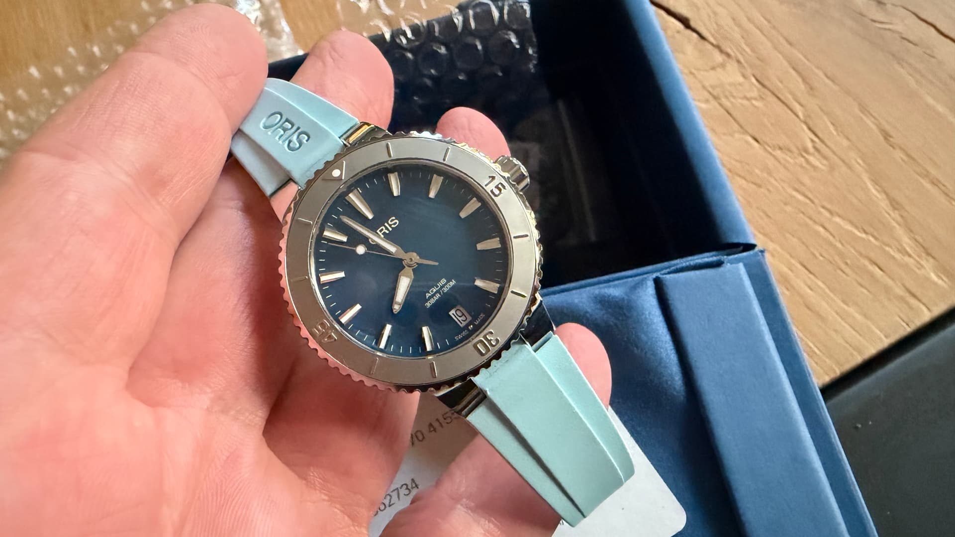 Ja hè, vooral die parelmoer wijzerplaat is echt prachtig! Net even toegevoegd op de Oris website aan de collectie en voor de extended (3 jaar) garantie.