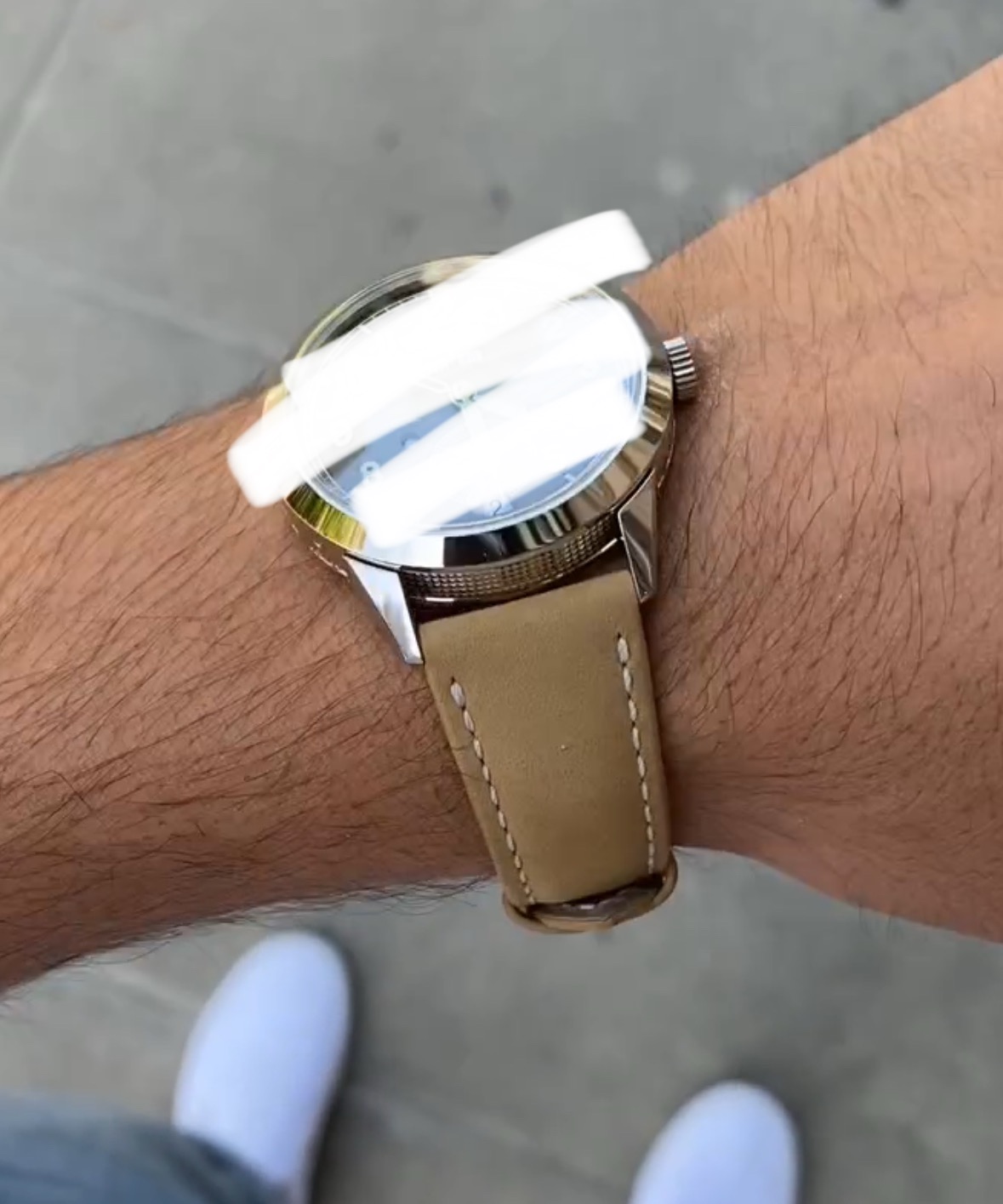 Als je een normale band (van welk merk dan ook) op een vouwsluiting zet, dan zit je altijd te klote dat de sluiting te veel naar achteren gaat en dat Calatrava kruis scheef hangt in het midden van de band. ![]()
