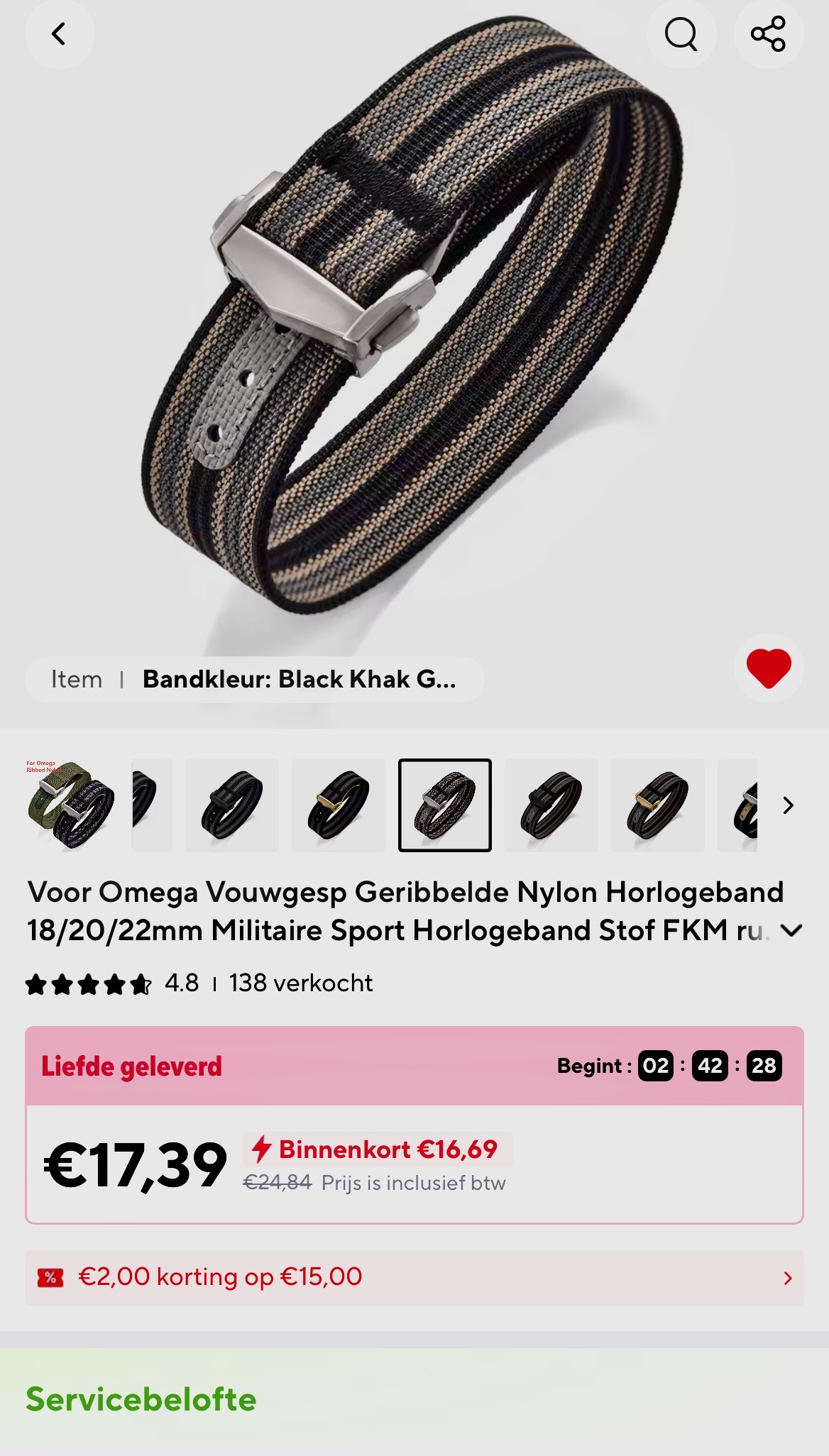 Heb al 2 andere banden van dit merk en die zijn echt van topkwaliteit. Dit wordt nummer 3, een blauwe voor m’n Tag Heuer Aquaracer 300 Professional gaat ook nog komen.