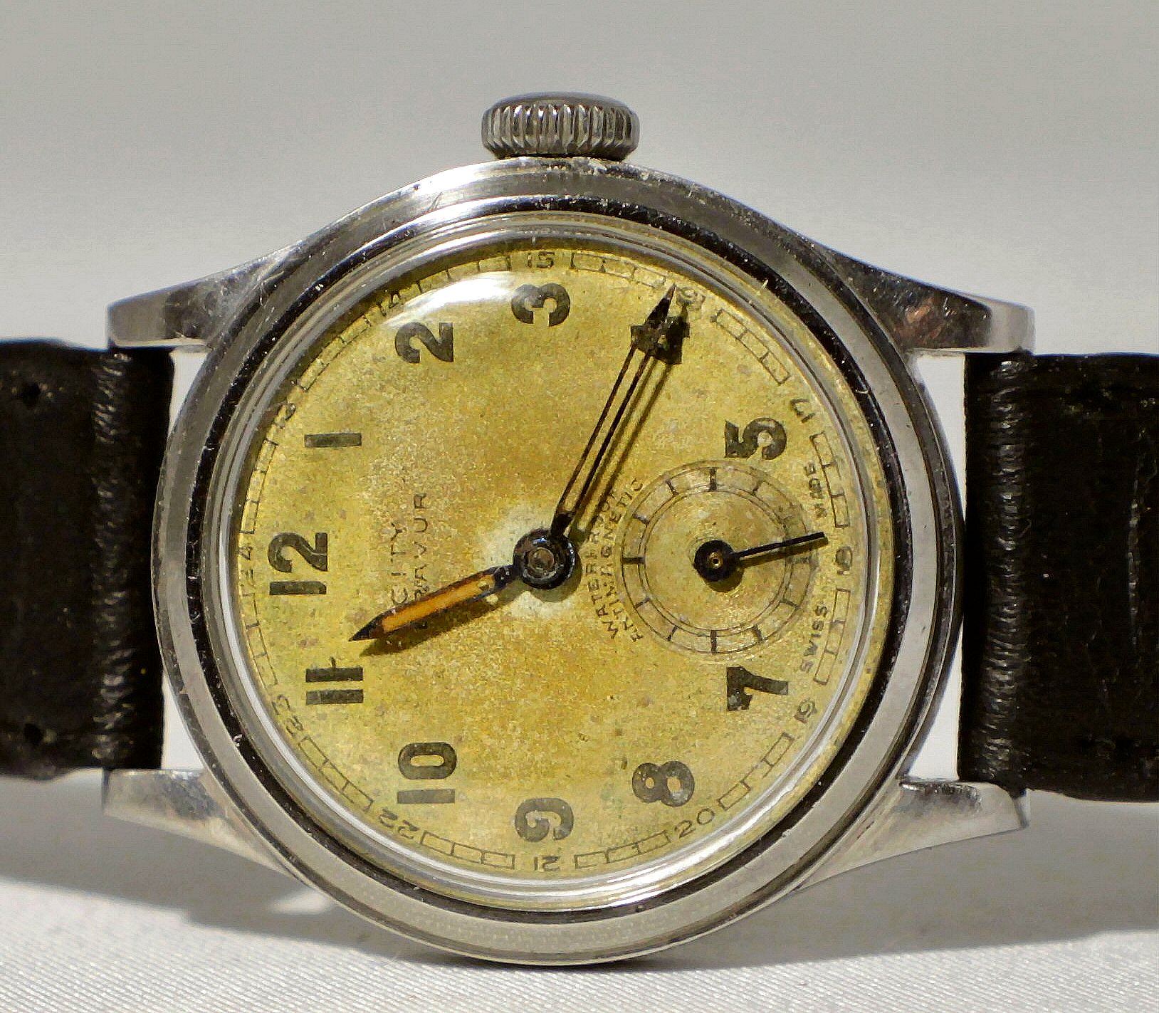 Op de Rikketik beurs van afgelopen najaar 2022 vond ik deze City. Gekocht bij Hubert Hagman, de sympatieke Zweedse verkoper die al een aantal keer op de de Rikketik beurs aanwezig was met zijn standje met Zweedse vintage horloges.