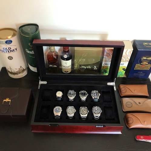 Als je dan toch zoveel geld uitgeeft aan horloges, koop dan ook eens nette whisky en rum. Of haal ze van de foto af want de toegevoegde waarde is -5 reeten.