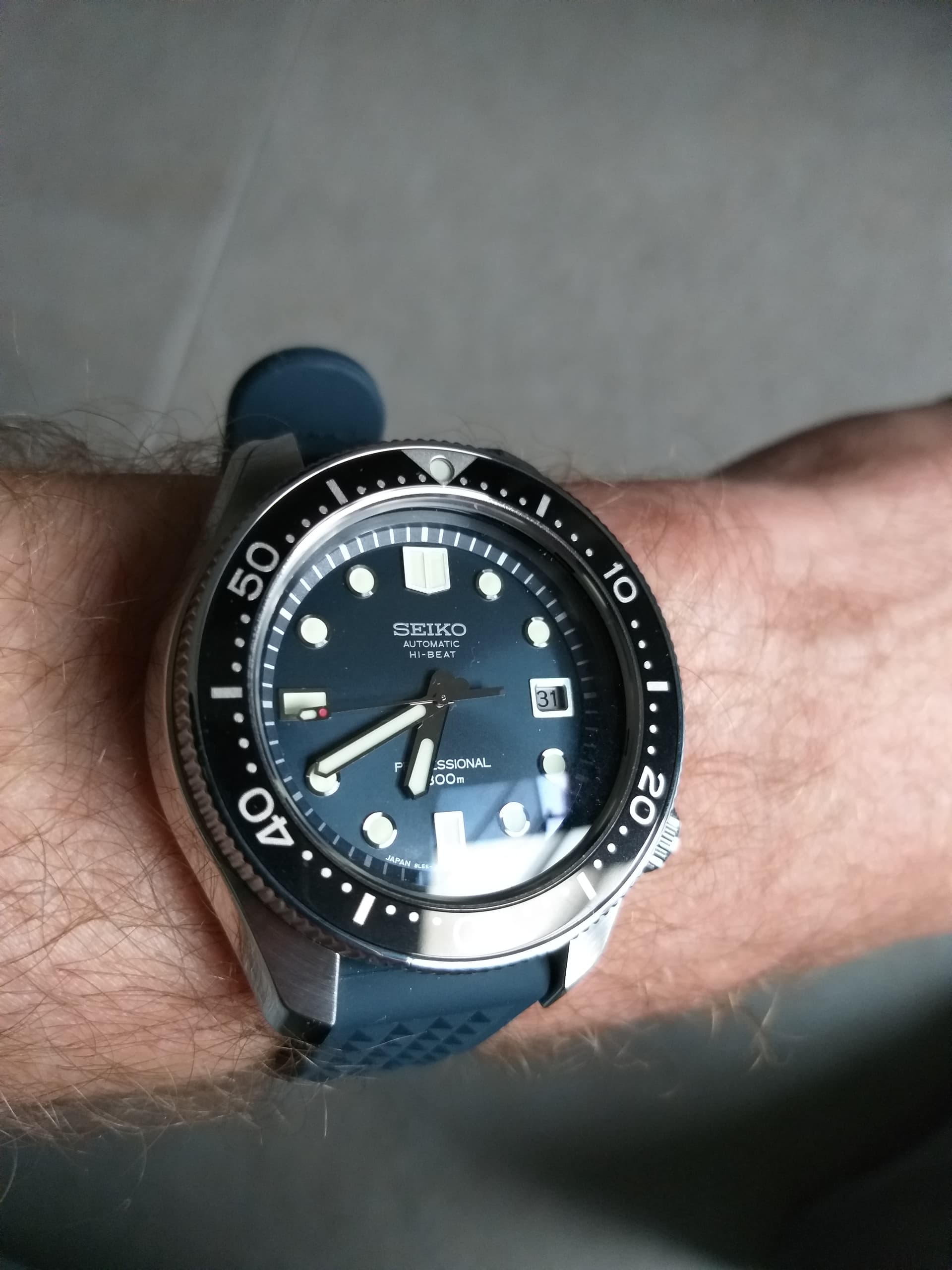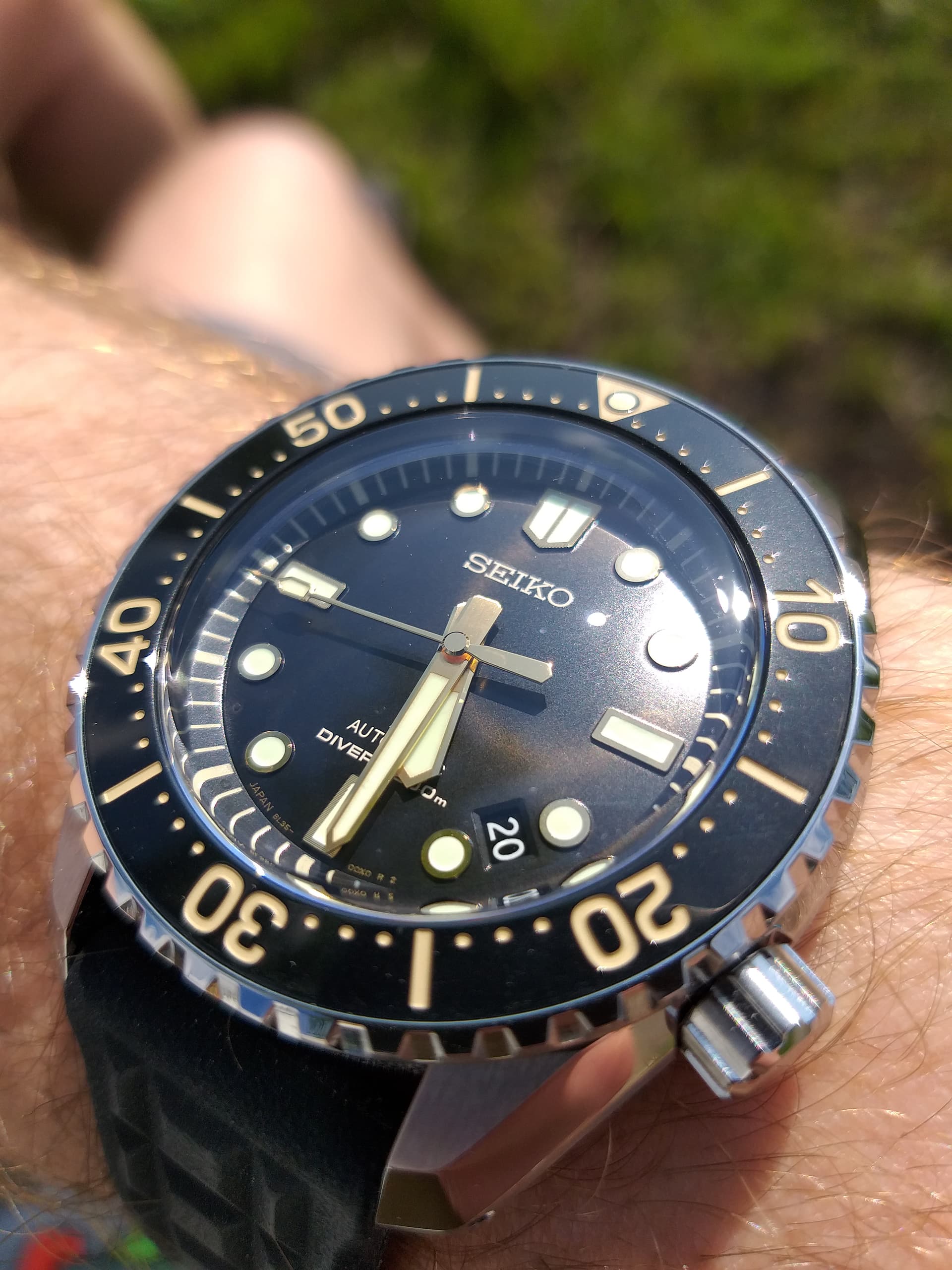 Paar verschillen: deze heeft lume op 3 en geen kader om de datum; en de band krijg ik minder lekker afgesteld. Heb nu een kleinere oem Seiko sluiting besteld en een paar US banden.