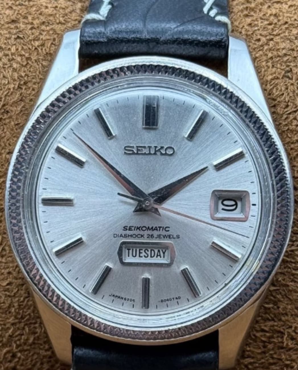 Zwarte wijzerplaat met sunburst en crosshair, een vergulde kast in goede staat, en dat al bijna 60 jaar oud… In juli wordt Seikomatic Self Dater 60 jaar oud.