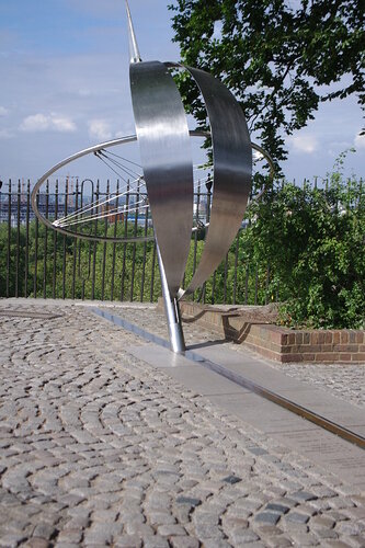 - op de achtergrond de GMT-lijn in het Royal Observatory te London