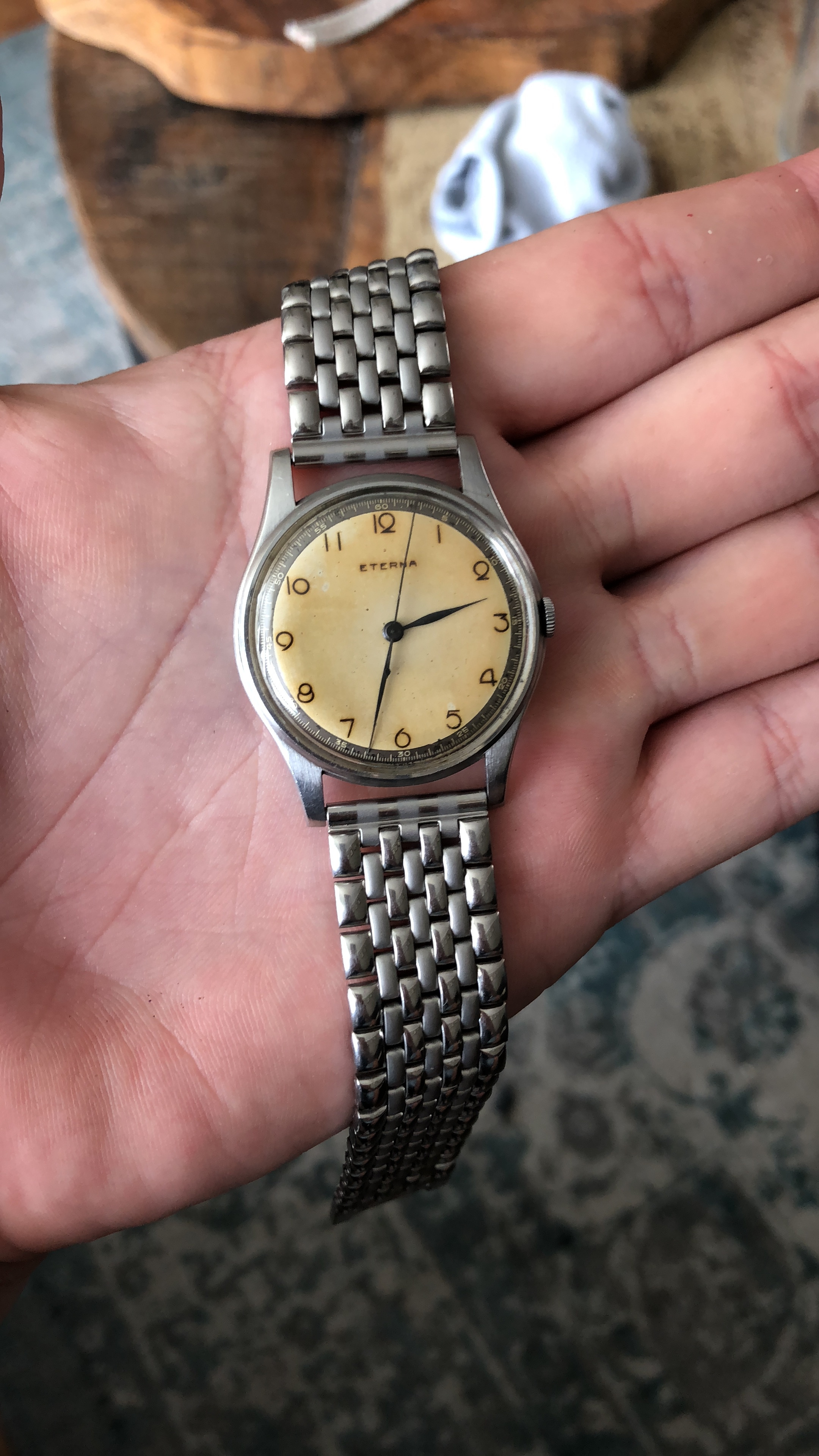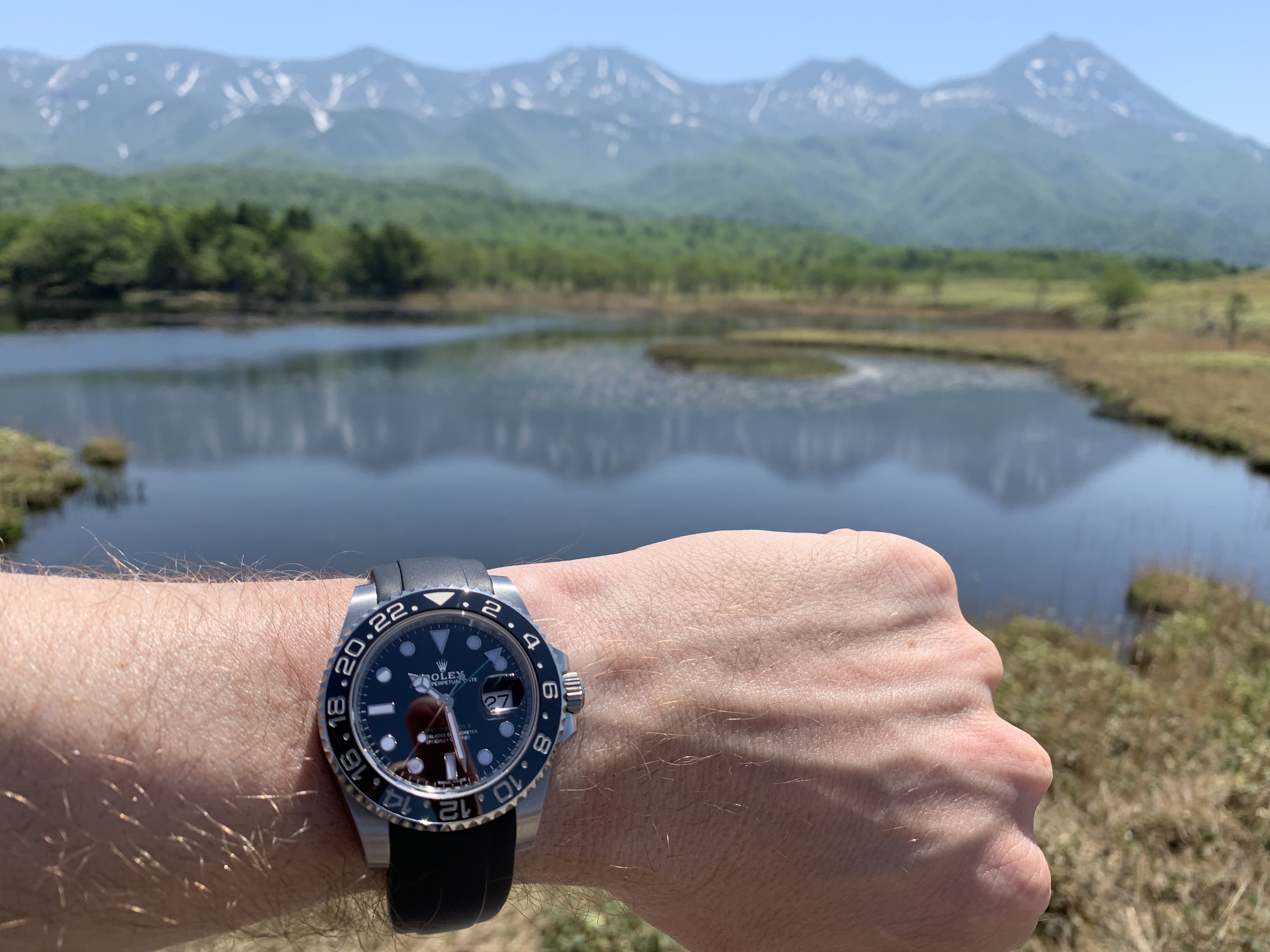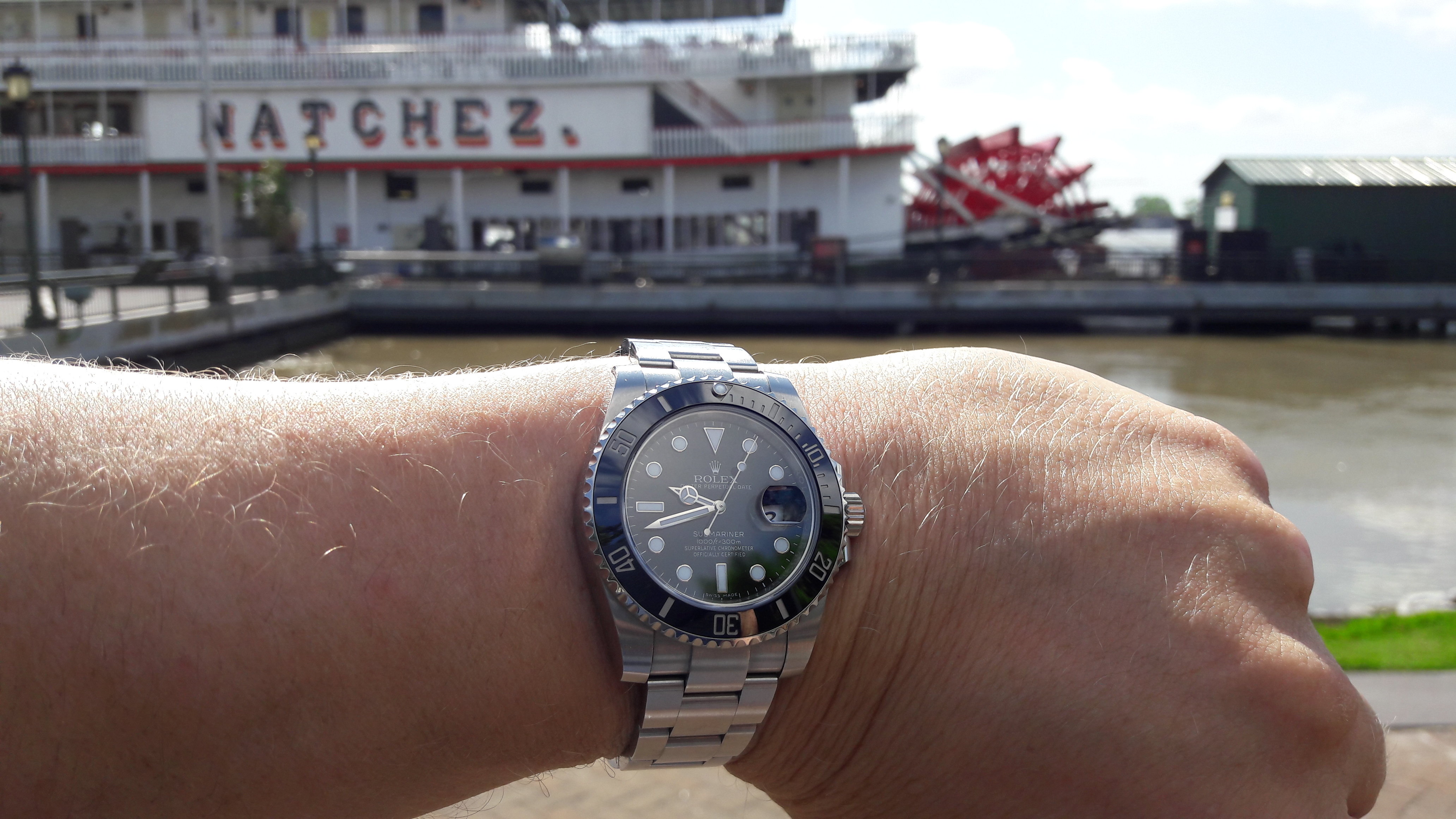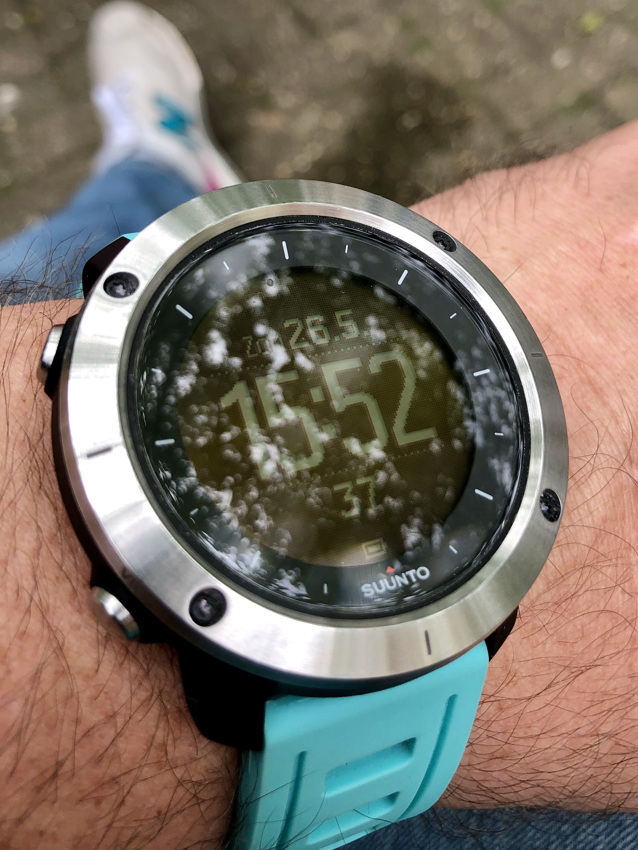 Haha, nee hoor hij hield zich taai! Zit wel wat aanslag van de zonnebrand op de binnenkant van 't bandje.