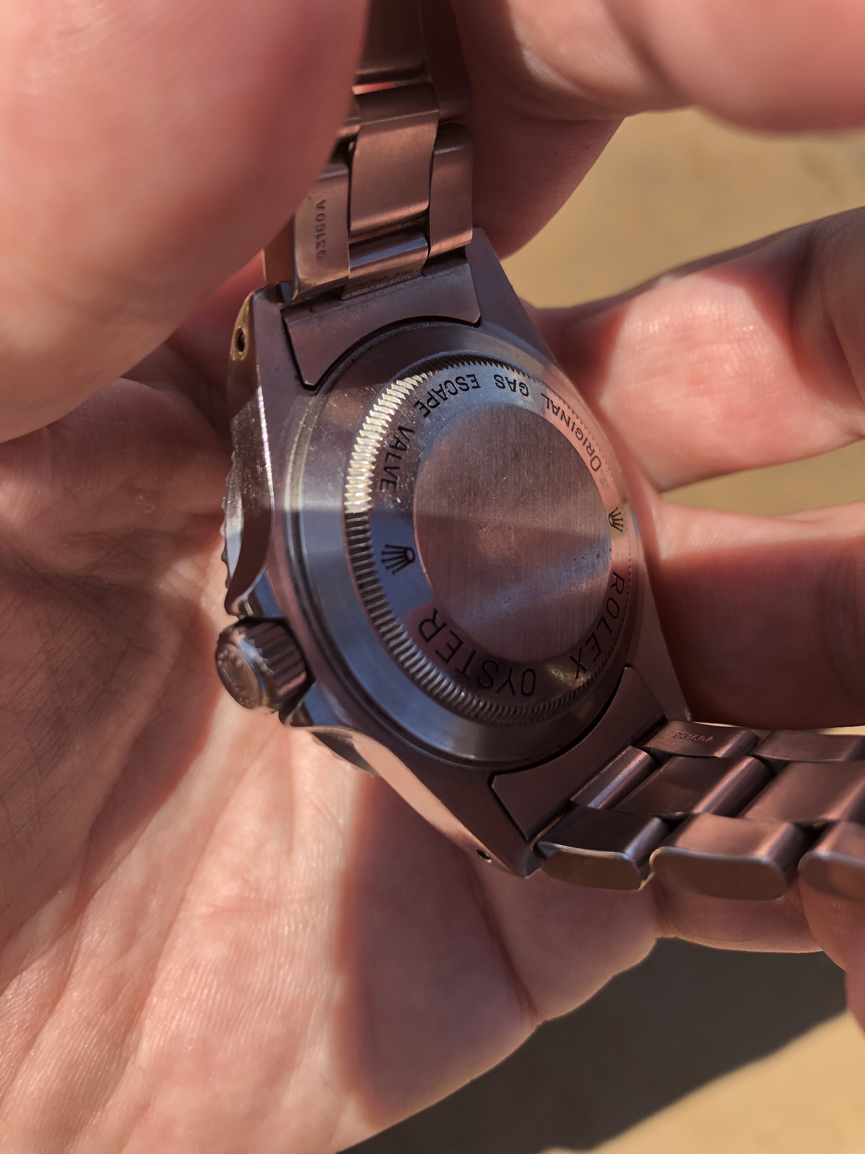 Absoluut waar. De kartelrand om de bezel is ook meer grof dan die van de sub. Had ook gevoel dat type oysterband net iets anders was.