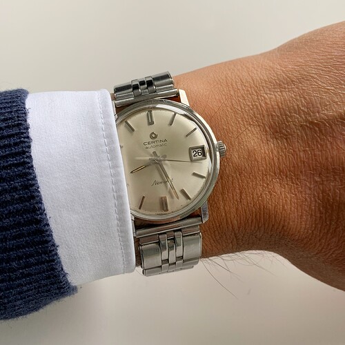 Vandaag de Certina DS N2, niet echt een classic, alleen voor mij zeer waardevol. Eerst door mijn opa dagelijks gedragen en daarna door mijn vader als hij niet aan het klussen was. Dus behoorlijk wat draagsporen, maar dat maakt hem voor mij nog beter. Fijne zondag.