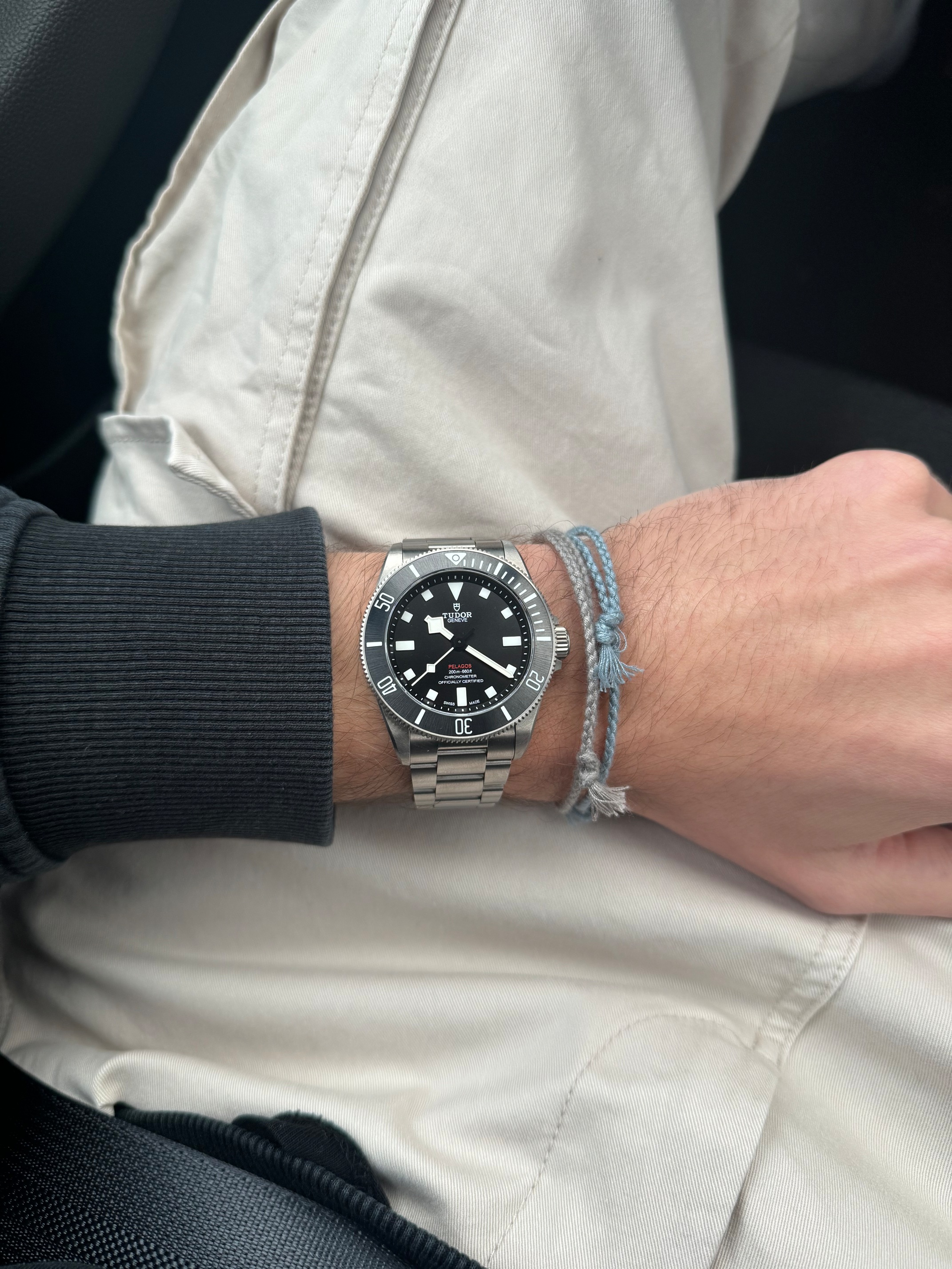 De verkoper attendeerde mij erop eens te kijken naar een Pelagos 39. Ook al was deze op dat moment eigenlijk boven mijn budget. Toevallig was er 1 binnen gekomen voor een klant en ik mocht deze bekijken en voorzichtig passen. BAM in 1 klap verkocht. Perfecte maat voor mijn pols, quick adjustment in de sluiting en de bezel in combinatie met de dial