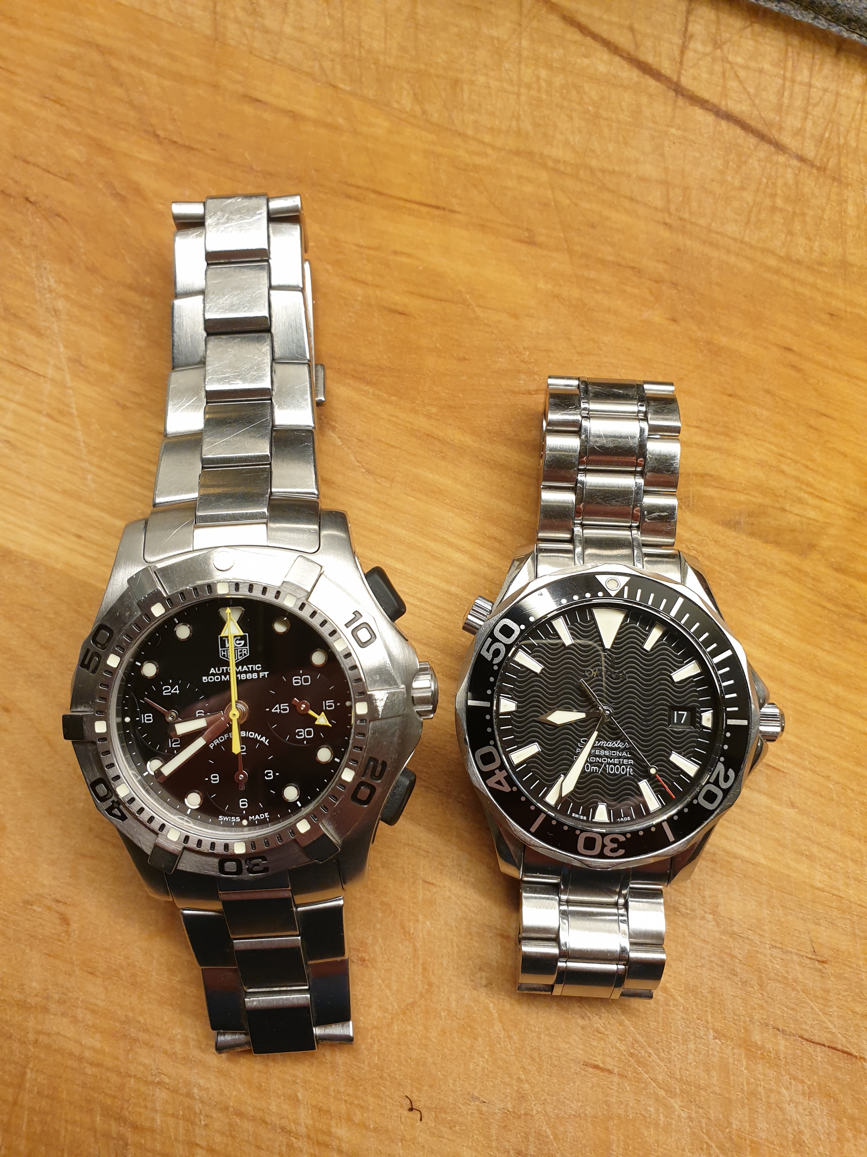 Kortom ik heb twee ouwe knarren die ongeveer even oud zijn. De ene ken ik door en door, die andere ben ik nu aan het ontdekken. Wel leuk om te zien hoe twee merken anders naar helzelfde concept keken. Tuurlikk weet ik dat Omega ook een chrono had en TH een 2000/Aquaracer maar die heb ik niet (meer)… :rofl: