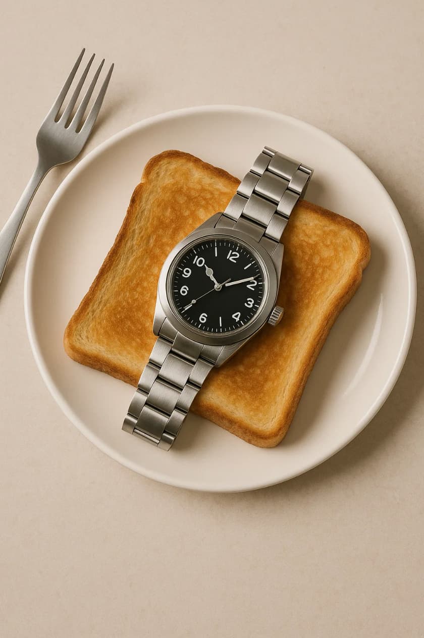 Ga voor een foto waarbij het horloge totaal secundair wordt aan de bizarre context waarin je het hebt gedropt. ![]()