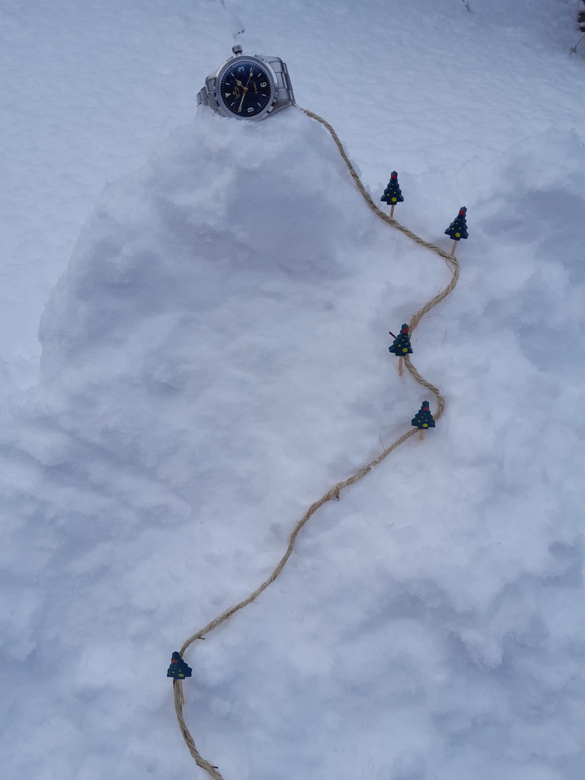Horloge is amper te zien, maar de kerstboompjes op camp 1 t/m 4 zijn top.