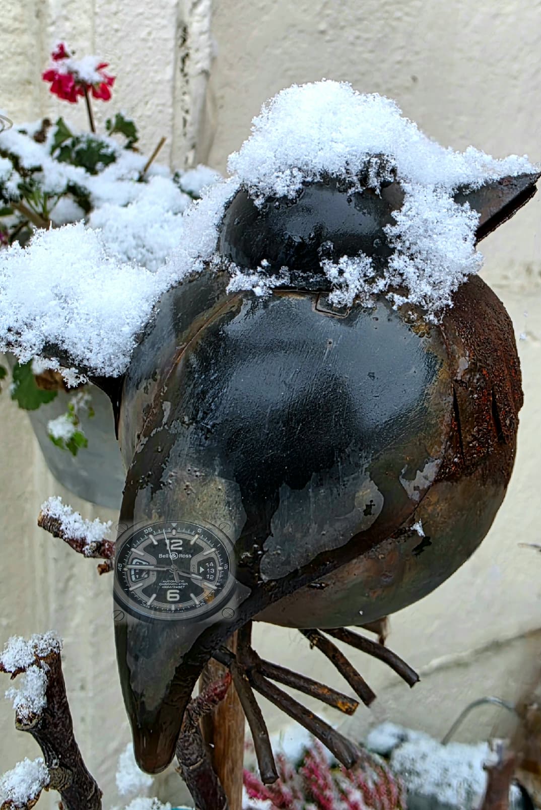 Tuin met sneeuw.