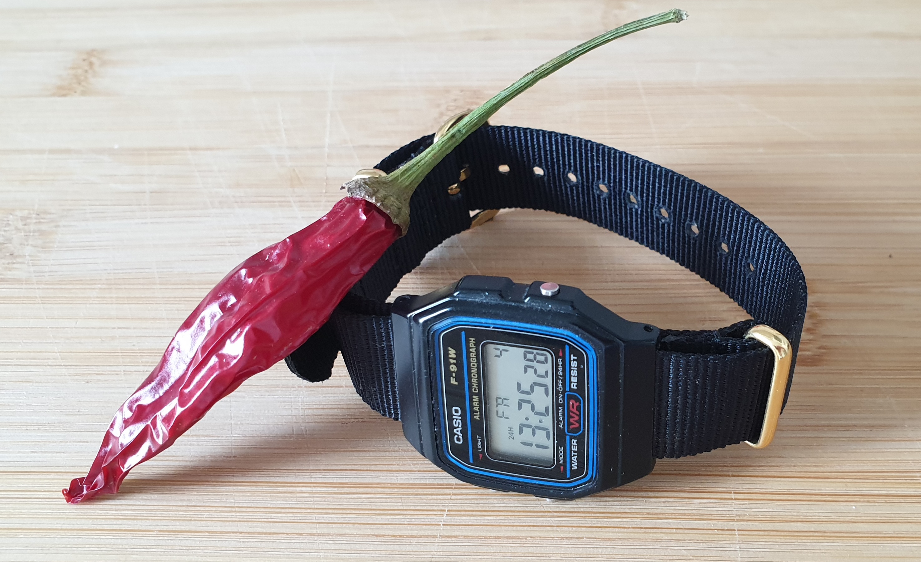 - Deze mag niet om de pols zitten, dus géén wristshot.