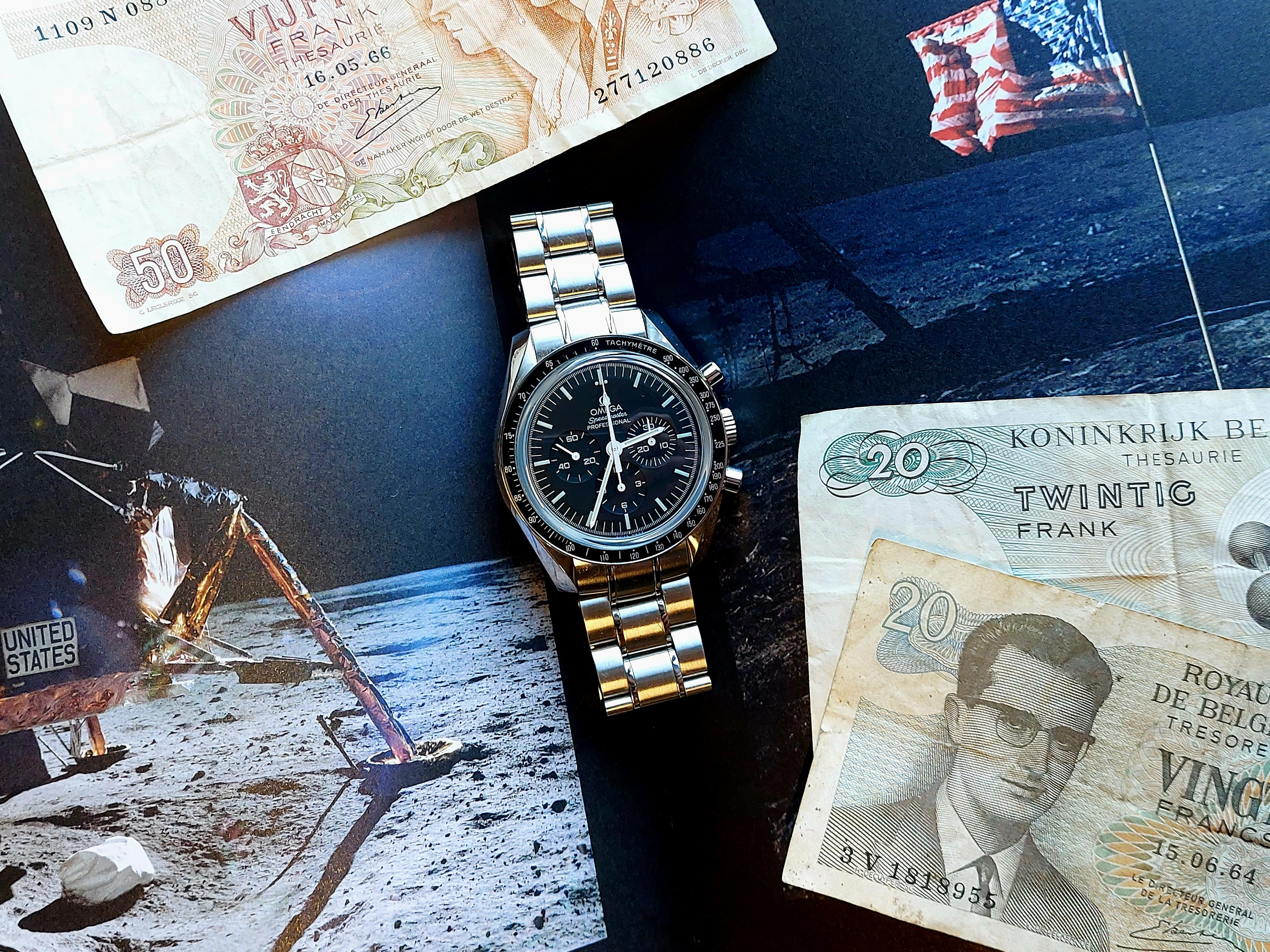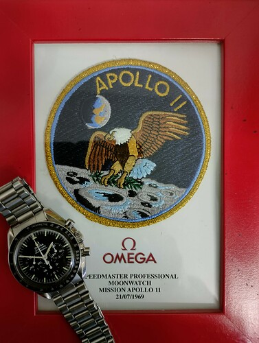 Onderstaand mijn Speedy op de foto met Alan L. Bean & Charles “Pete” Conrad Jr. en mijn eigen Hasselblad camera uit de jaren 60. Eerst even over de heren. Beide heren zijn, tezamen met Richard F. Gordon Jr. met Apollo 12 op 14 november 1969 naar de maan vertrokken. Zij zijn op 19 november 1969 op de maan zijn geland en hebben hier veel onderzoek gedaan en foto’s gemaakt. En je raadt het al… de foto’s die de heren maakte zijn allemaal gemaakt met Hasselblad camera’s (je ziet hem op de buik hangen). Zelf heb ik ook een Hasselblad camera (500EL/M 20 years in Space model) welke uiteraard niet op deze foto mocht ontbreken. Op de achtergrond zie je verder Bean (3e man ooit op de maan) groot in beeld en in zijn visor zie je als je goed kijkt ook nog Conrad staan.