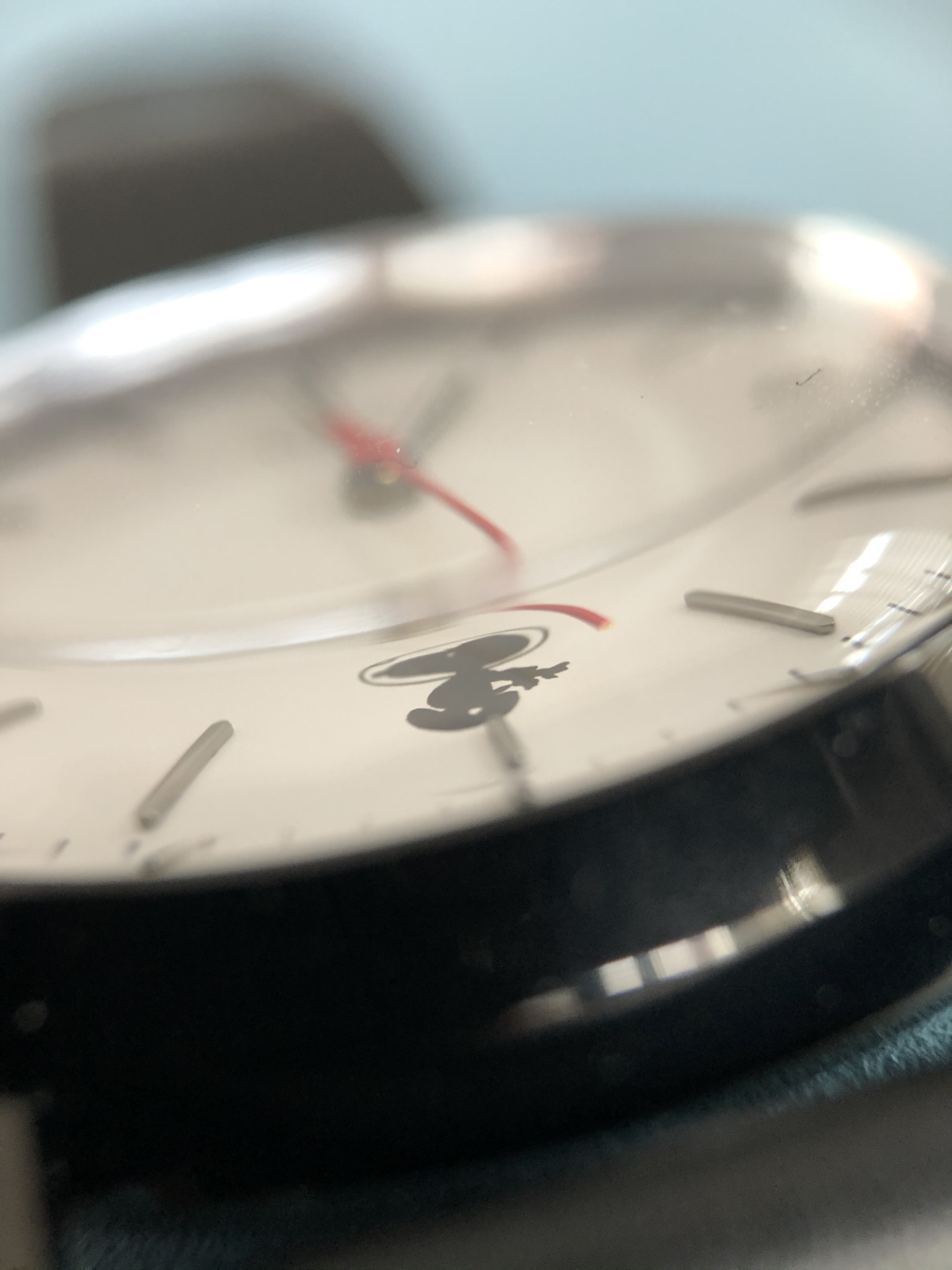 Ik moet echt heel goed kijken maar herken de contouren van Snoopy met een astronautenhelm.