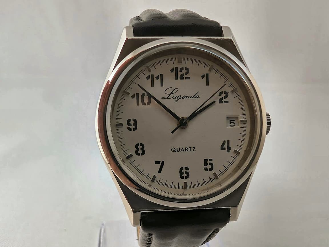 Ik kende het merk en ik had zelfs al een Lagonda in de verzameling, maar dan een èchte vintage met een mechanisch uurwerk uit eerdere tijden: een degelijke Zwitserse A.Schild AS 1604. Ook via Tradera.
