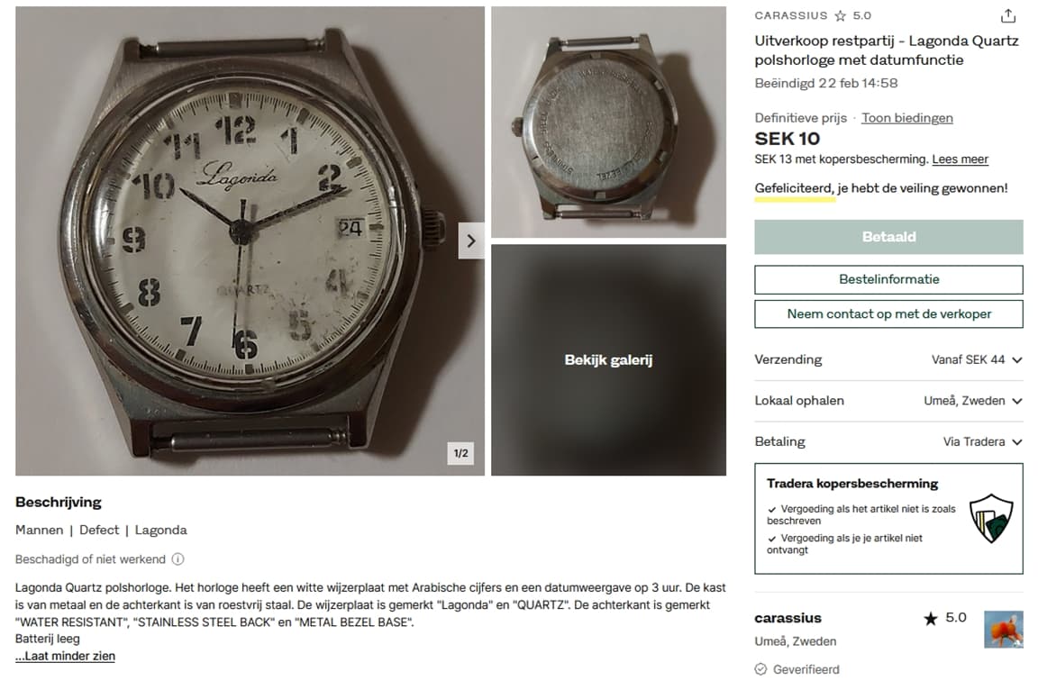 Een tijdje geleden kocht ik op de Zweedse veilingsite Tradera een aardig horloge voor een prijsje dat nog binnen mijn zeer beperkte budget paste.