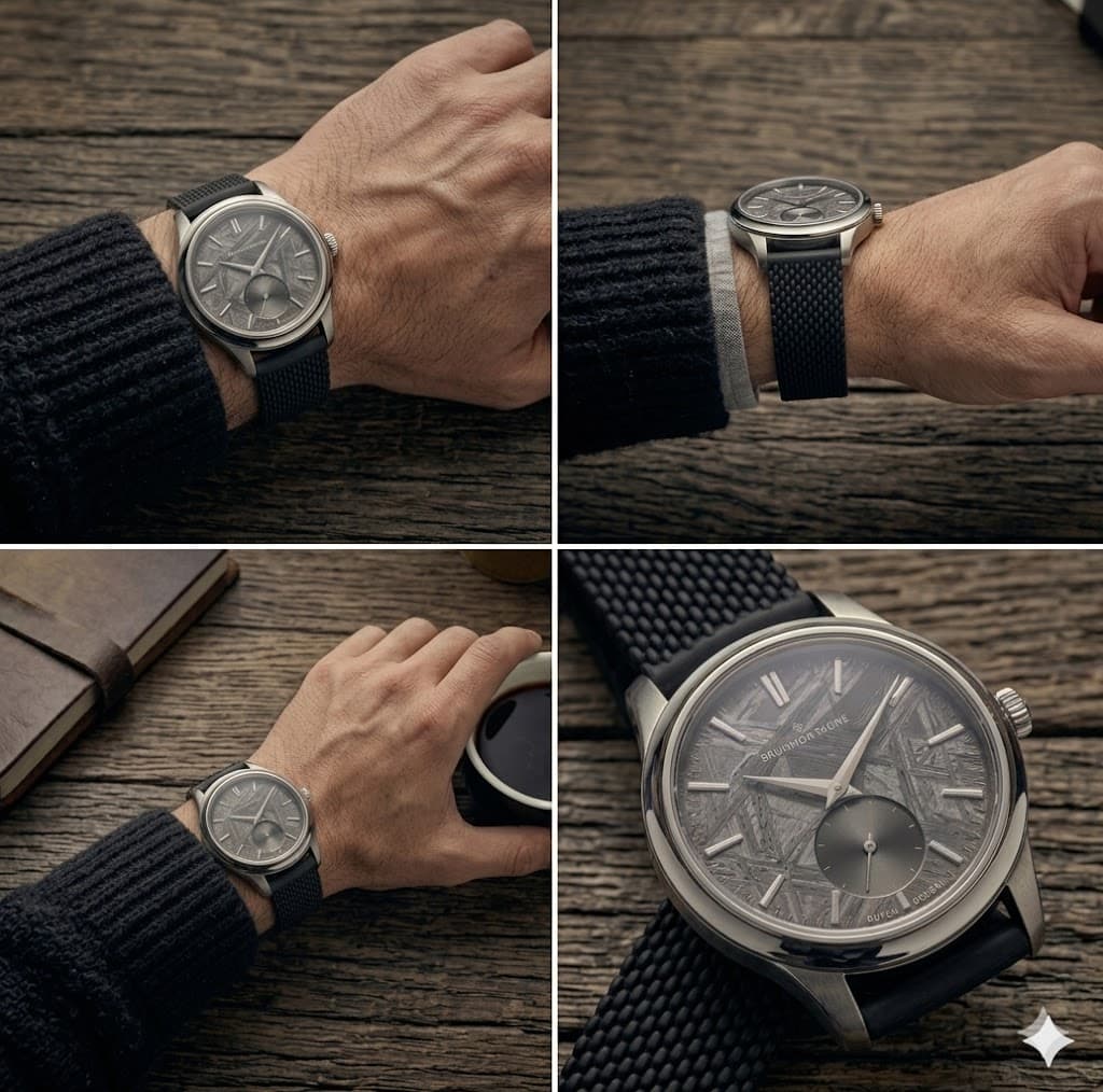 In lijn met ontwerp van het horloge zie ik rubber dus totaal niet zitten!