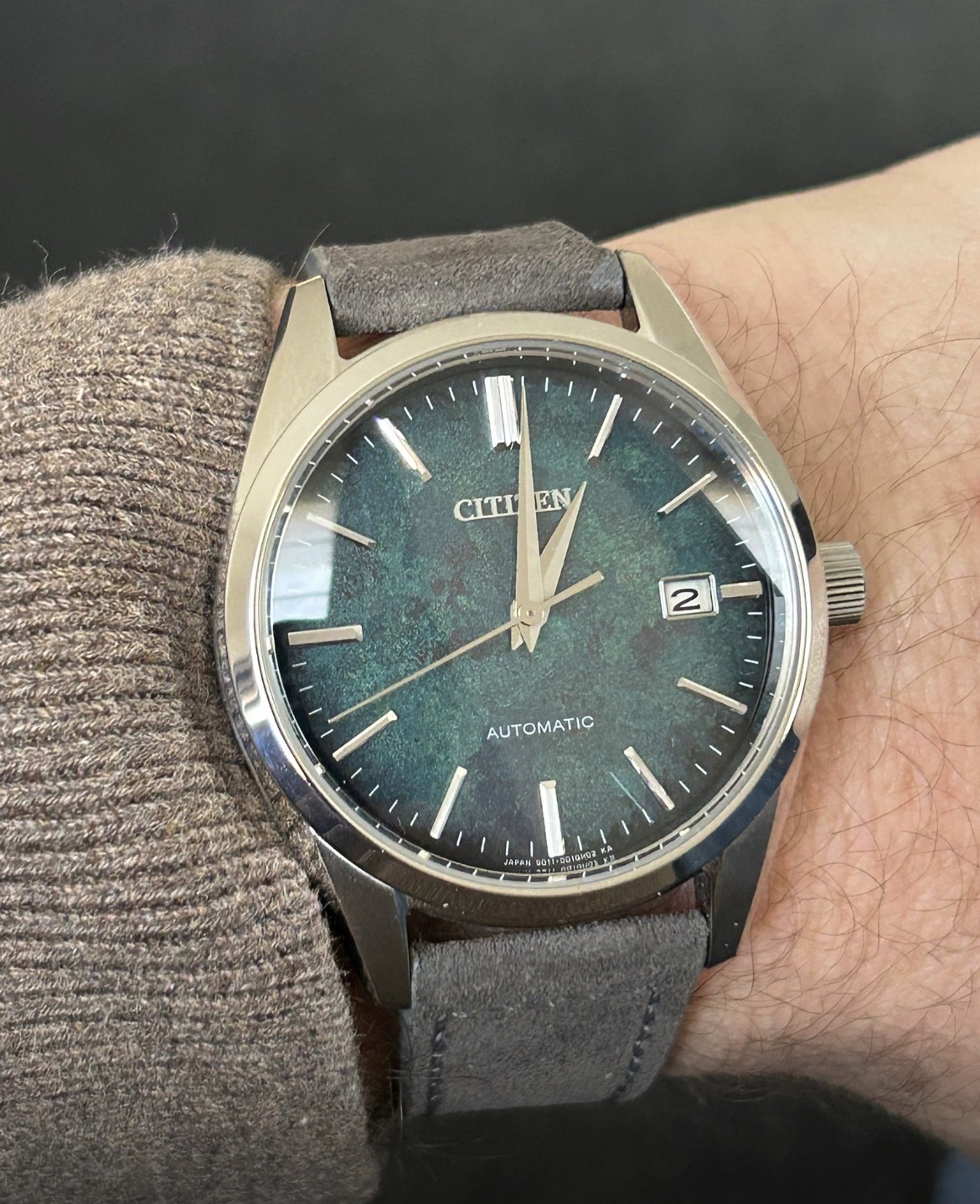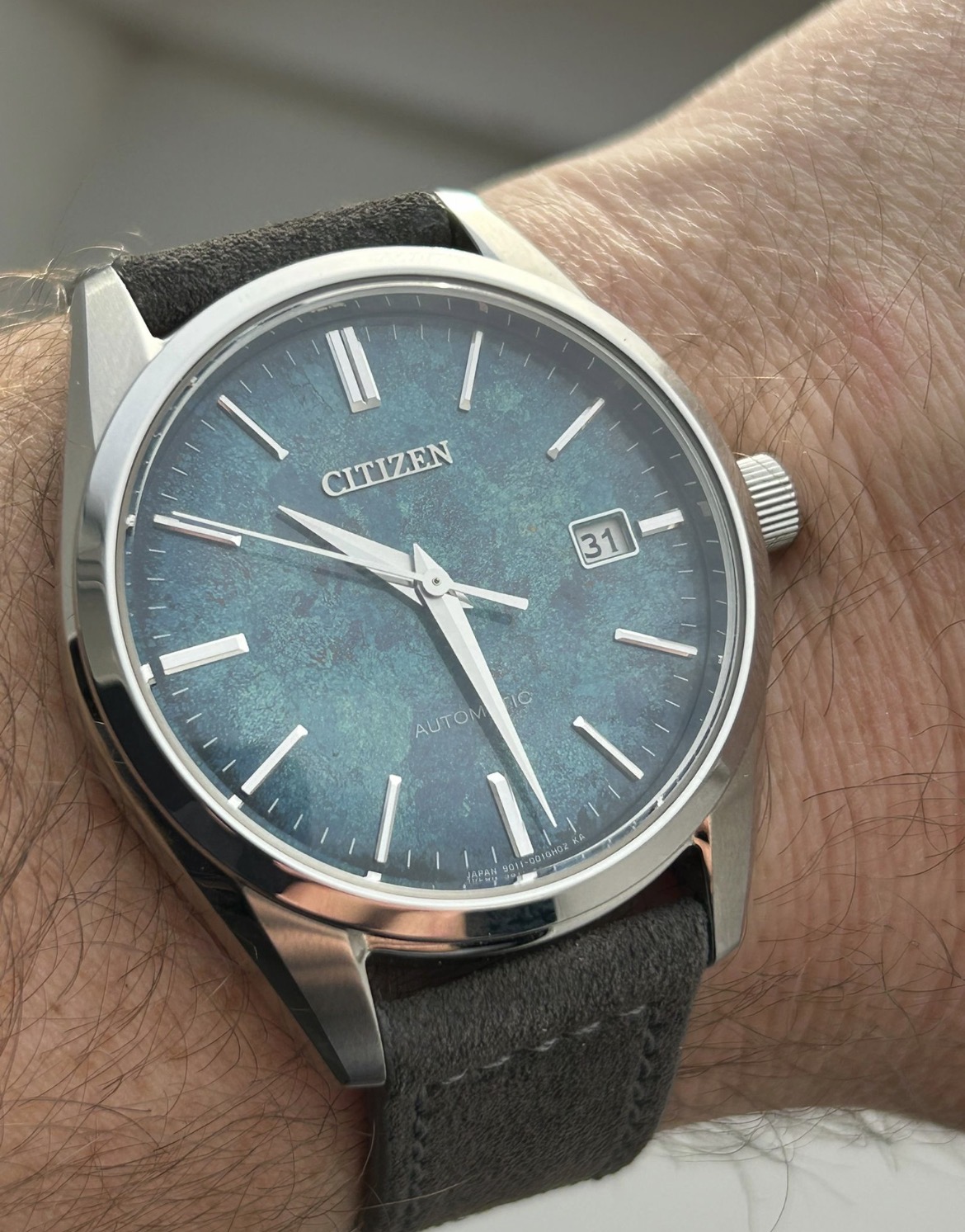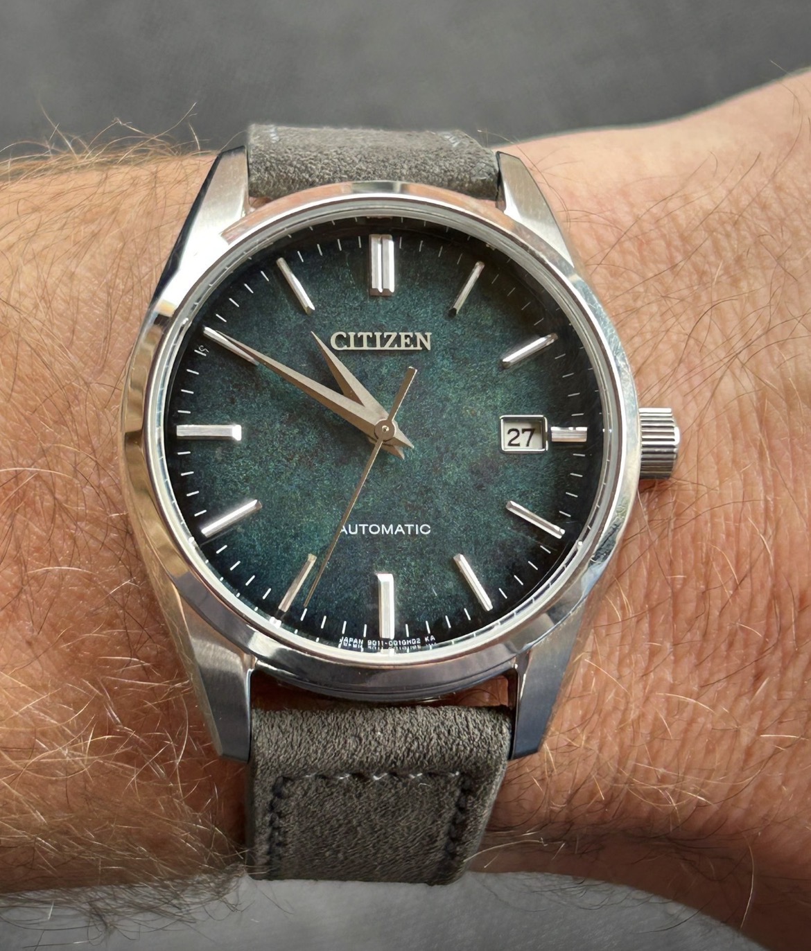 Grijs suede is heel mooi dat had ik op mijn Citizen: